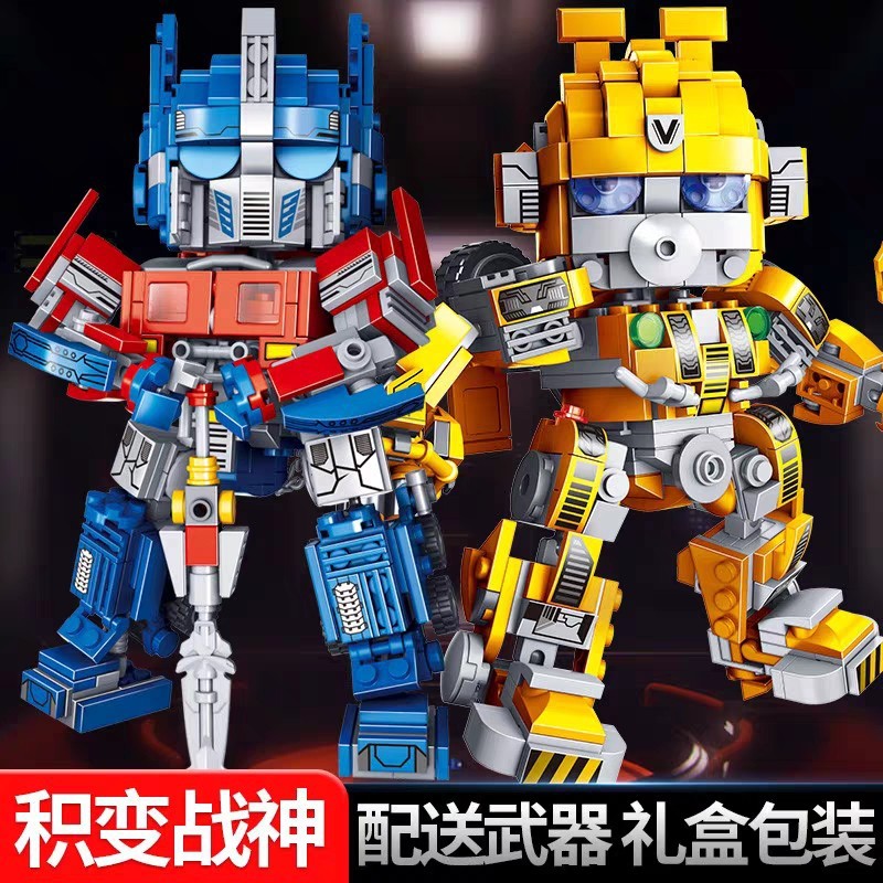 Qiaole 소년 로봇 옵티머스 하늘 전쟁의 신 황제 꿀벌 전쟁의 신 변형 빌딩 블록 작은 입자 교육용 어린이 장난감 소년스토어 가기