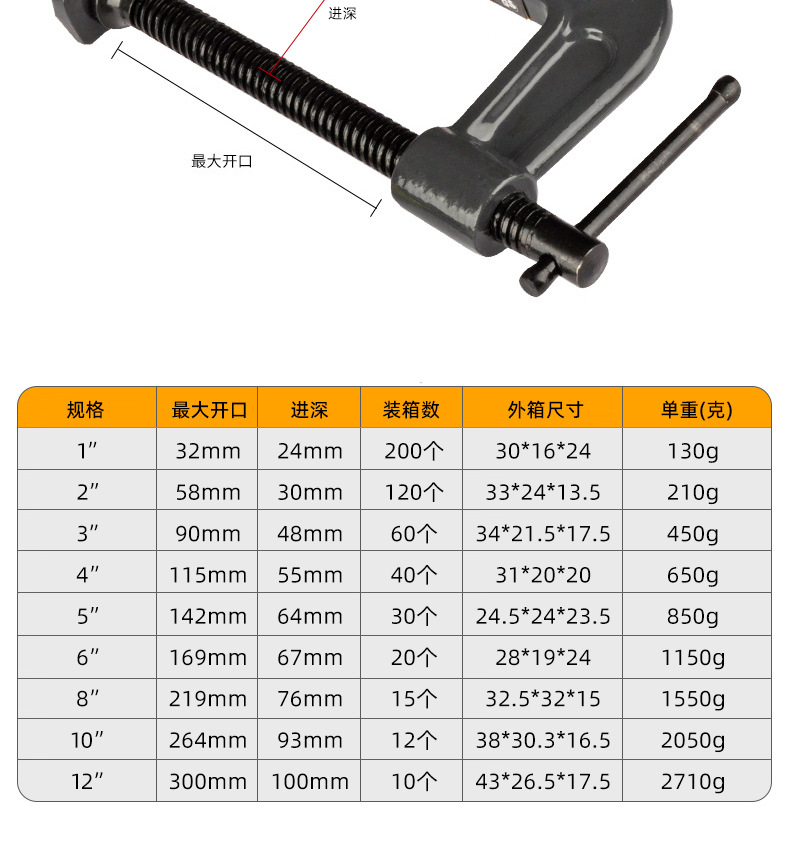 공장용 중형 G자형 클램프 목공용 강력 클램프 빠른 고정 클램프 목공용 빠른 고정 클램프 G형 클램프스토어 가기