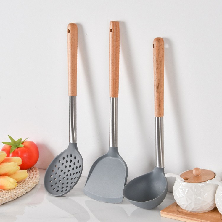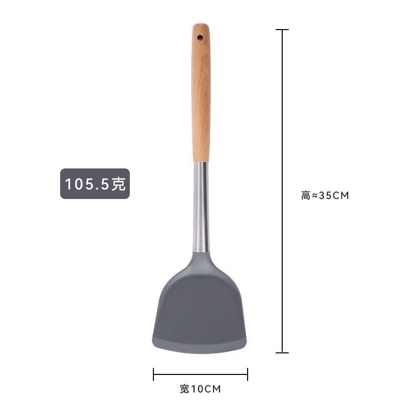 실리콘 주걱, 길쭉한 나무 손잡이, 청소가 쉬운 소쿠리, 국자, 고온 방지 주방 논스틱 특수 조리용 주걱, 주방용품스토어 가기