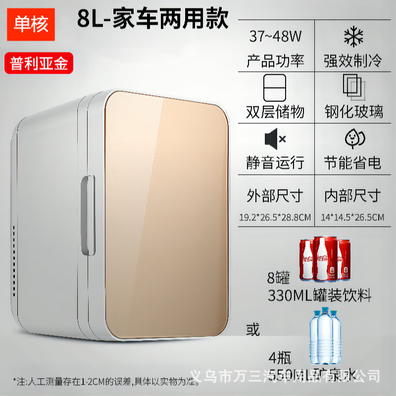 【车载冰箱适用范围】:适用于饮料、食物、水果、化妆品、牛奶的保鲜储存及保温。单核不能放肉类,不能冷冻。