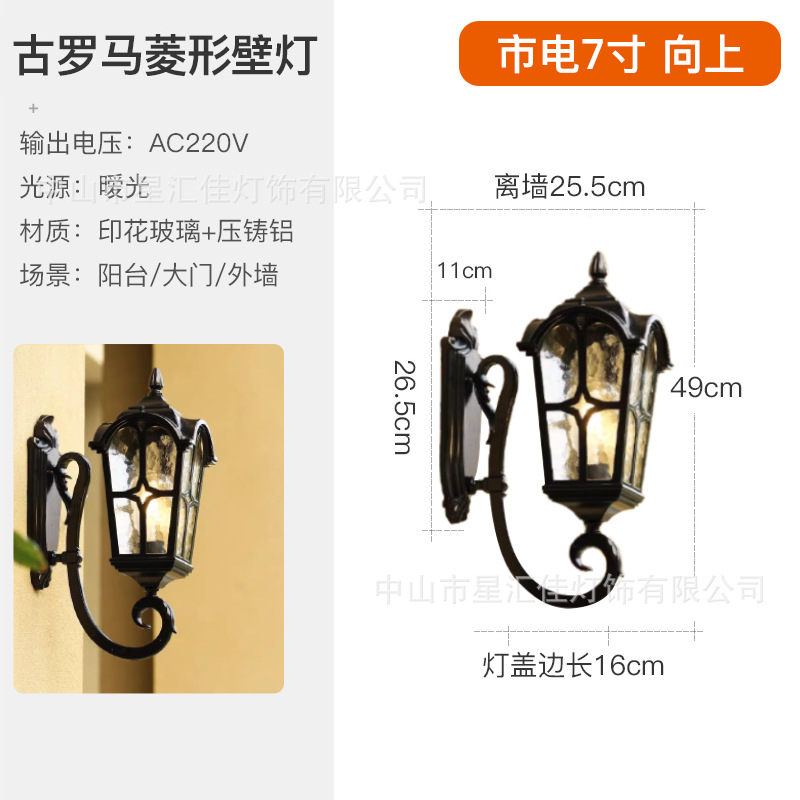 • 고대 로마 다이아몬드 모양의 벽 램프/상향 7inch (전원 연결/LED 전구 보내기)