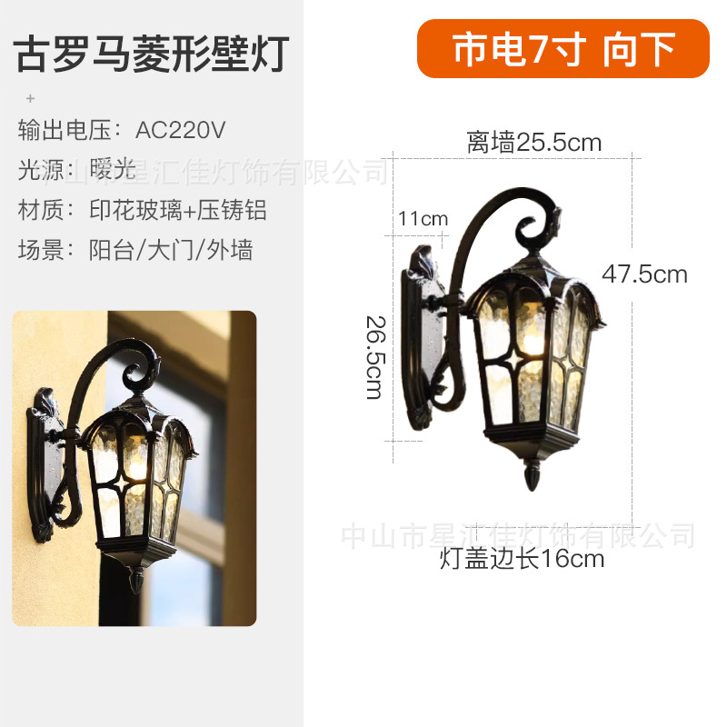 • 고대 로마 다이아몬드 벽 램프/아래 7inch (태양광 이중 사용 모델)
