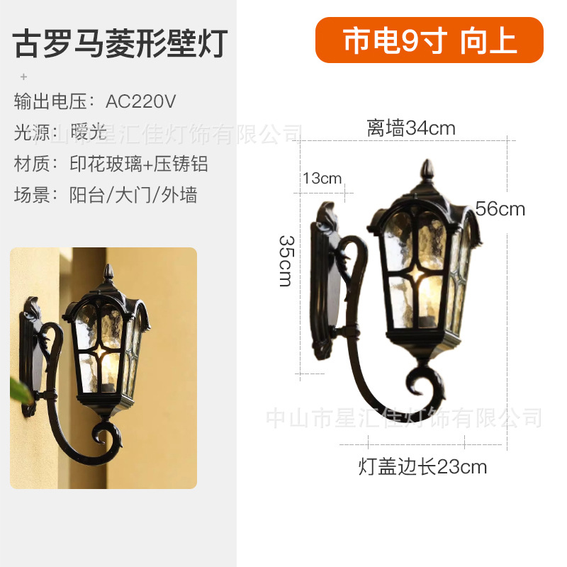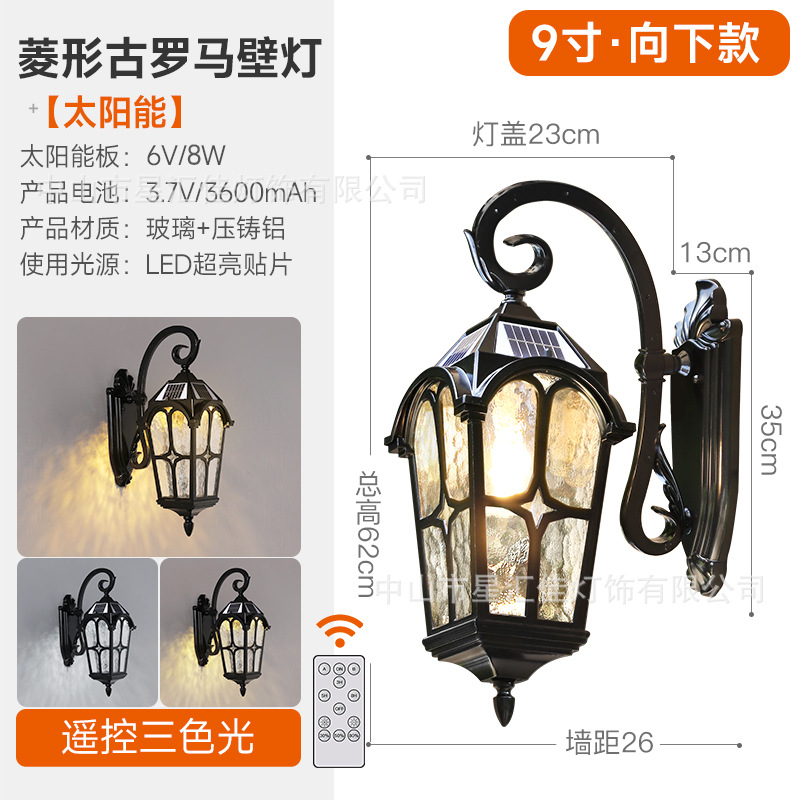 • 고대 로마 벽 램프/위로 9inch (태양광 이중 사용 모델)