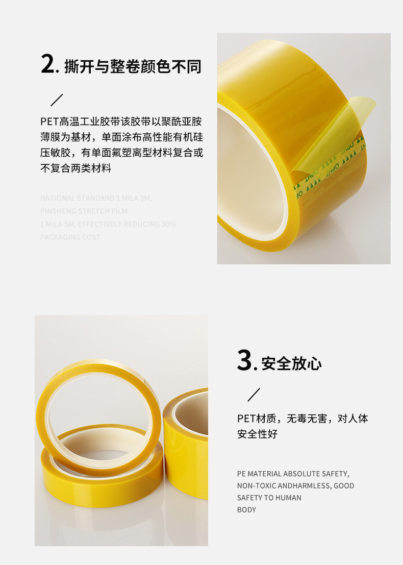 공장 컬러 고온 테이프 도매 비 잔류 접착제 스프레이 페인트 마스킹 보호 필름 접착제 투명 PET 테이프