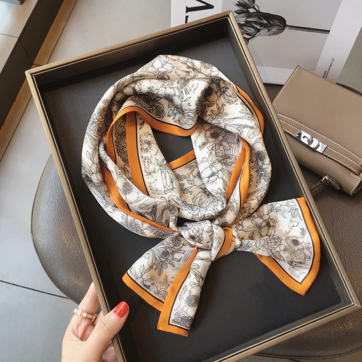 2024 신상 D자 실크 스카프 여성용 뽕나무 실크 롱 봄여름 얇은 프린트 스카프 작은 스카프 장식 머리띠스토어 가기