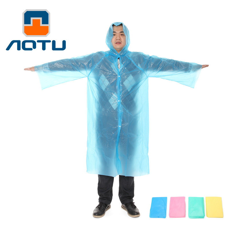 1 the product has good water resistance, color variety, with high strength, non-toxic, tasteless, no cuff tightening rope, is a portable disposable raincoat.