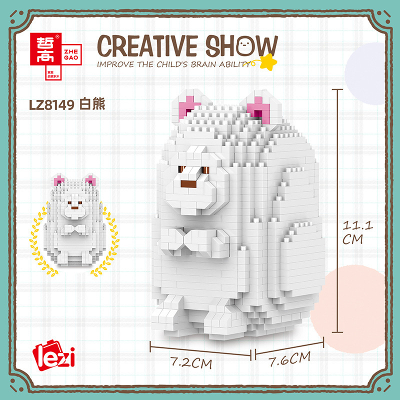 Zhegao 일본 코너 생물학 시리즈 마이크로 다이아몬드 과립 인형 곰 가족 어린이 조립 퍼즐 빌딩 블록 장난감스토어 가기