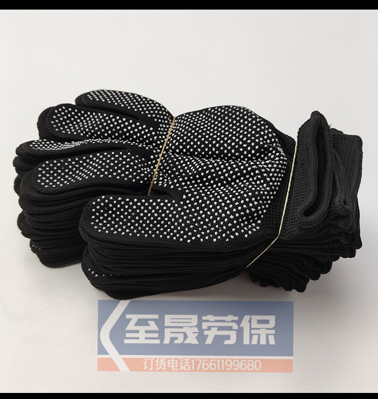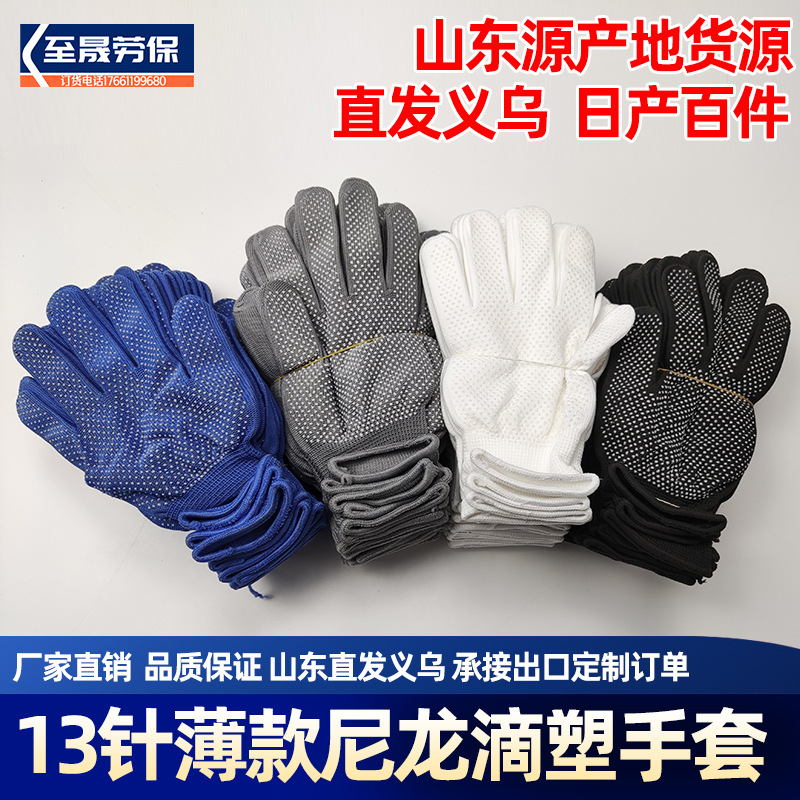 공장 도매 13 핀 나일론 포인트 플라스틱 장갑 얇은 먼지 없는 13 핀 블랙 그레이 블루와 화이트 나일론 드롭 플라스틱 장갑