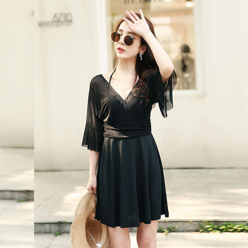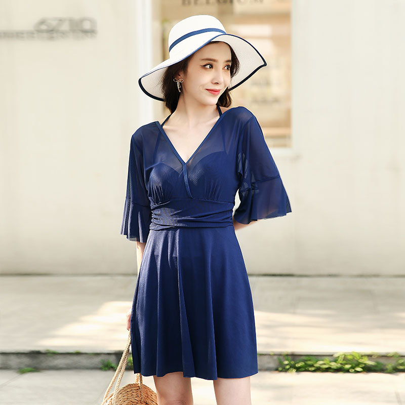 섹시한 수영복 여성용 V-넥 원피스 배꼽 덮기 슬림 한 한국 스타일 학생 보수 스커트 스타일 작은 가슴 강철 브래킷 신선한 모여스토어 가기