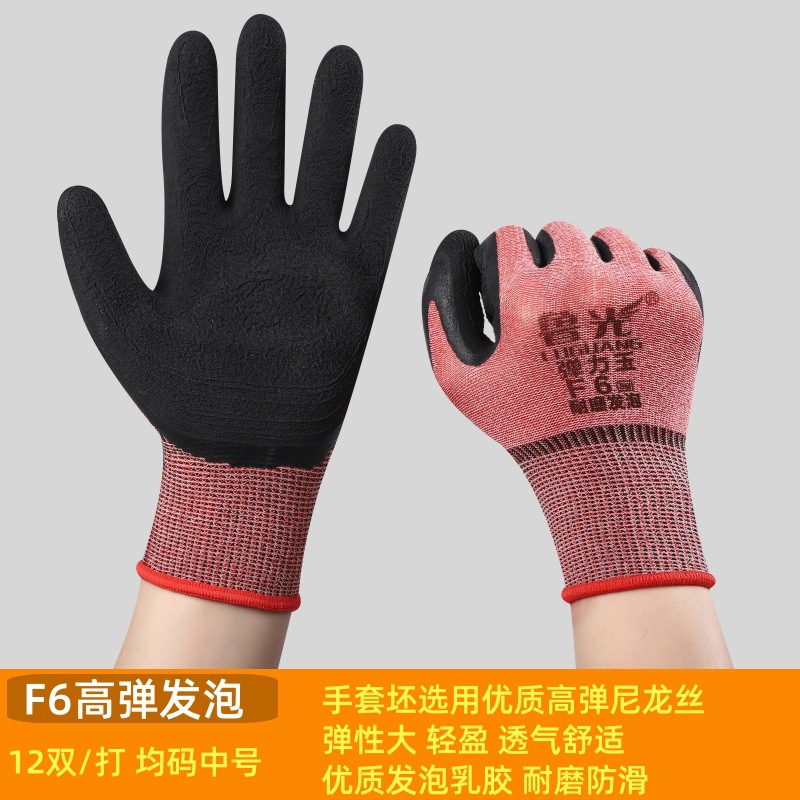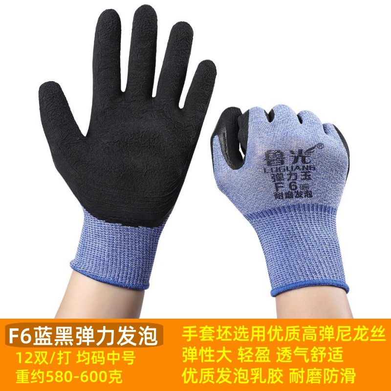 Luguang F6 폼 교수형 접착제 장갑 고탄성 주름 딥 내마모성 작업 보호 접착제 장갑스토어 가기