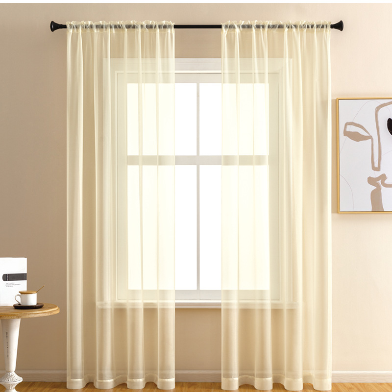 간단한 삼중 창 스크린 막대 천공 베이지 대외 무역 크로스 보더 아마존 커튼 패브릭 완제품 도매스토어 가기