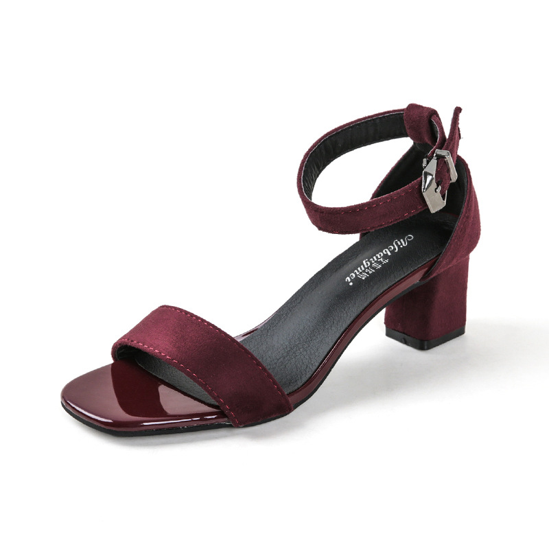 두꺼운 힐 벨트 샌들 여자 아우터웨어 2024 새로운 여름 캐주얼 올 매치 블랙 스웨이드 하이힐 두꺼운 힐 샌들스토어 가기