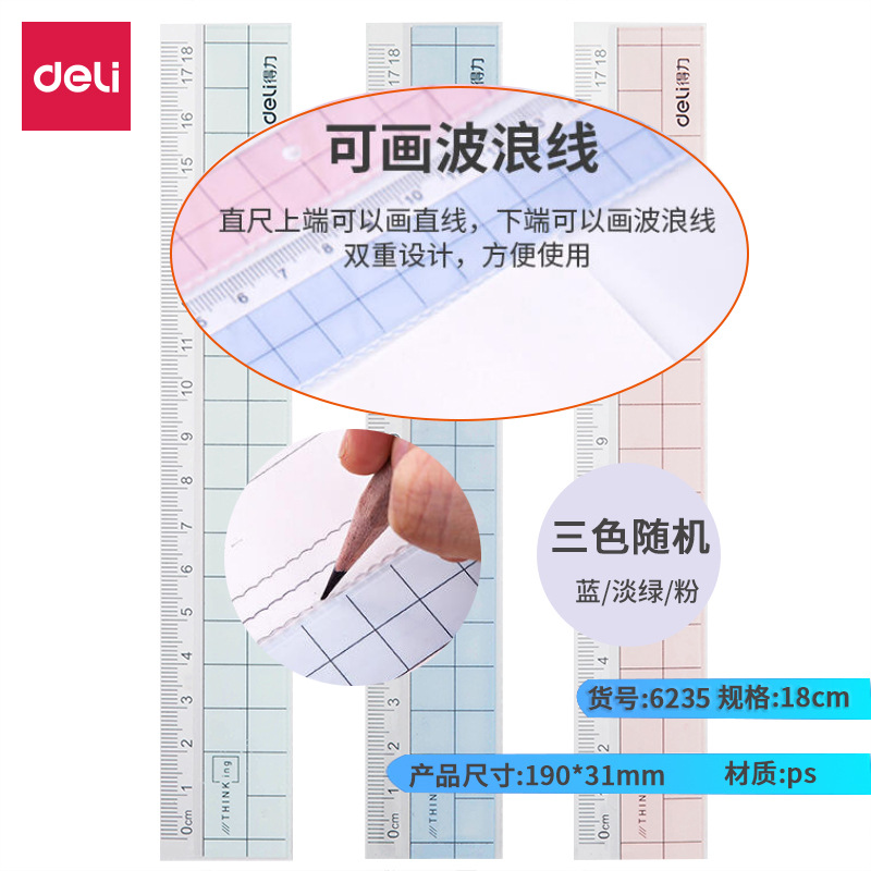 델리 눈금자 플라스틱 측정 자 60cm 15cm 18cm 학생 세트 자 물결 선 소프트 테이프스토어 가기