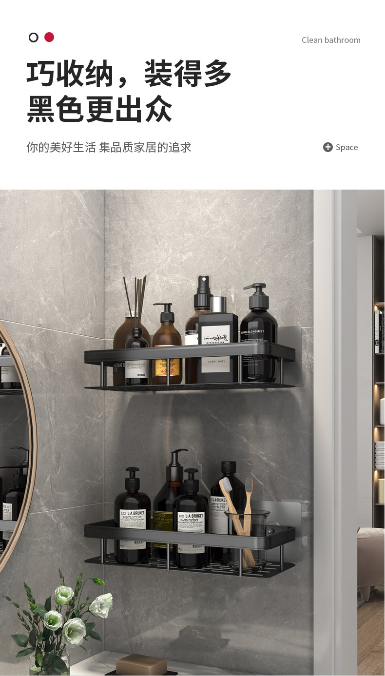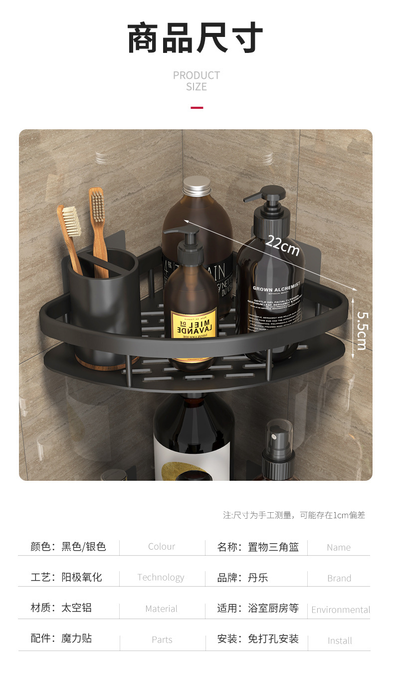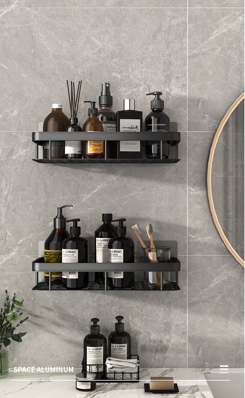 펀치 없는 욕실 수납 랙 화장실 수납 랙 화장실 코너 랙 걸이 공간 알루미늄 화장실 벽걸이스토어 가기