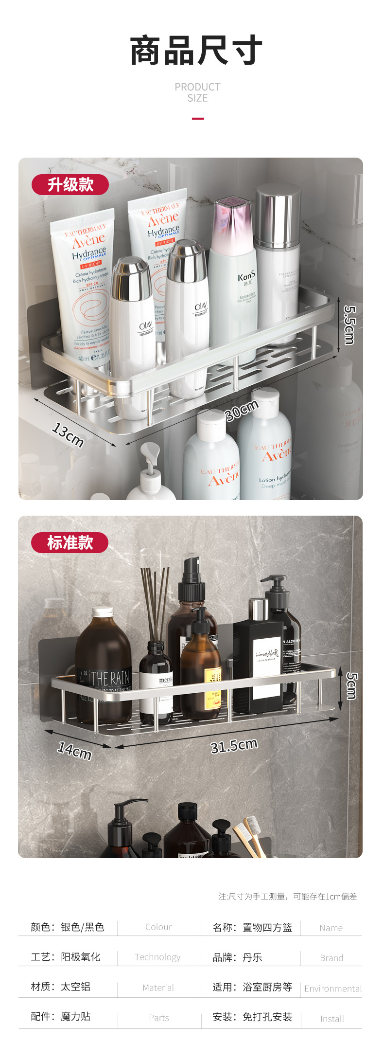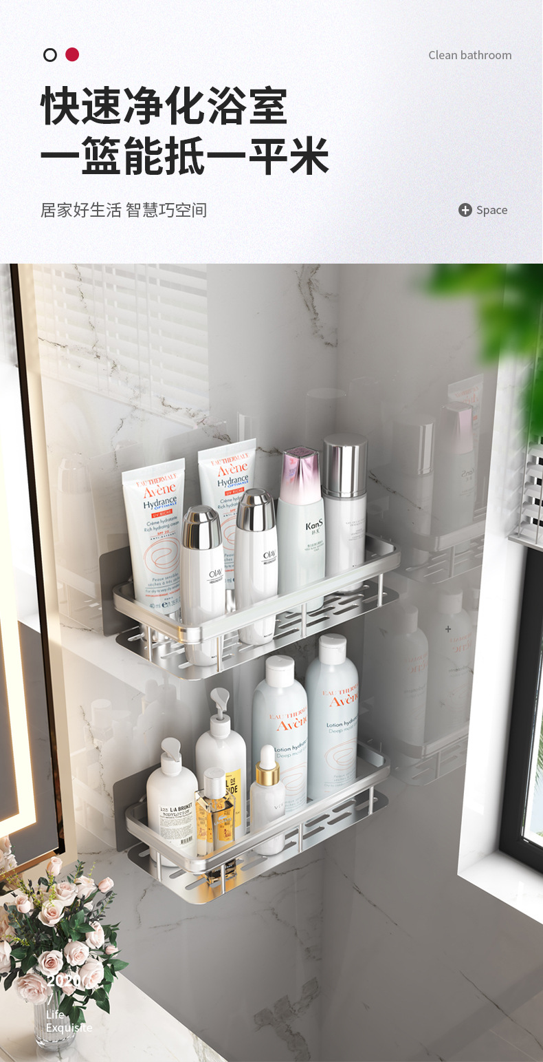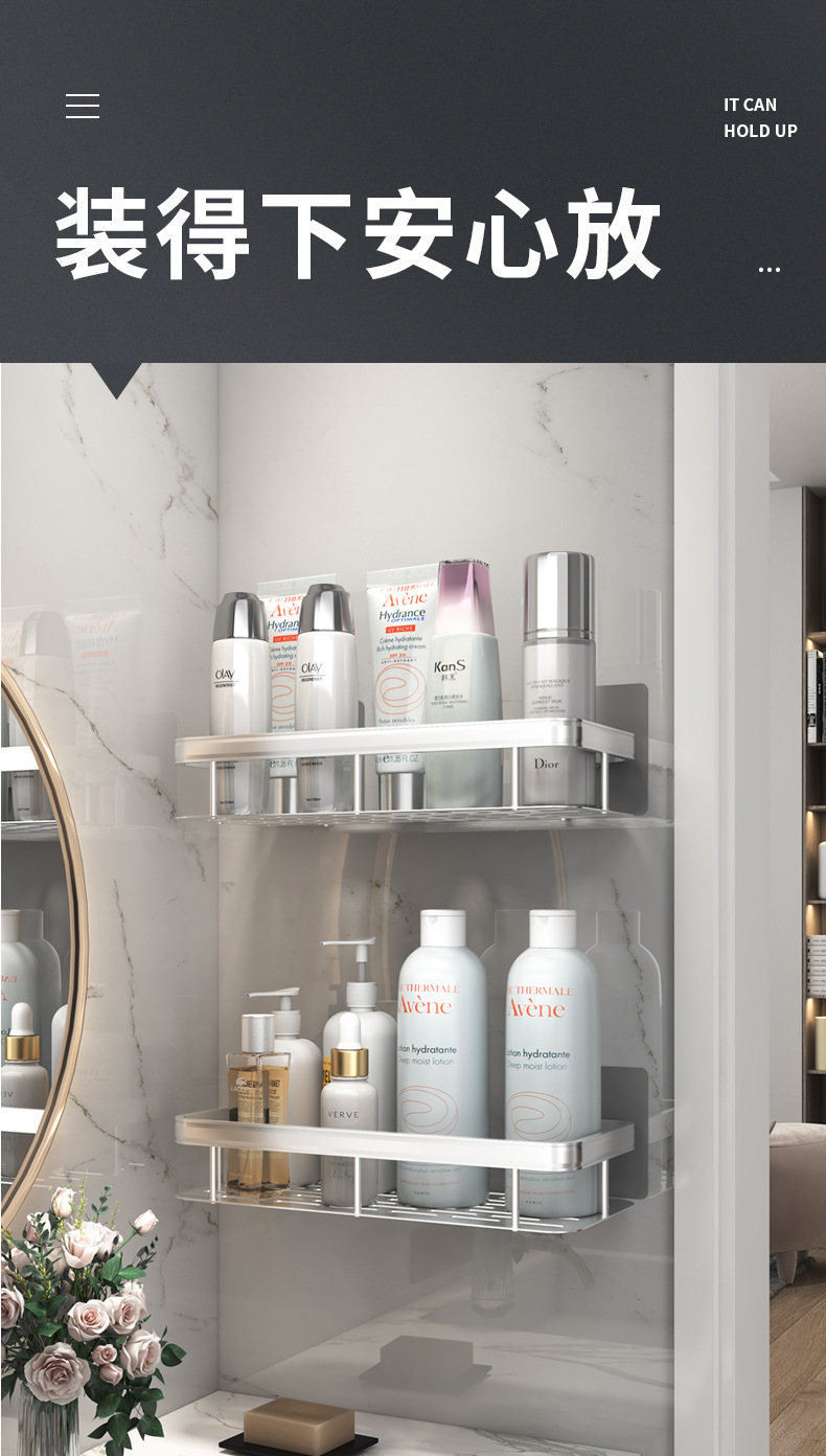 펀치 없는 욕실 수납 랙 화장실 수납 랙 화장실 코너 랙 걸이 공간 알루미늄 화장실 벽걸이스토어 가기