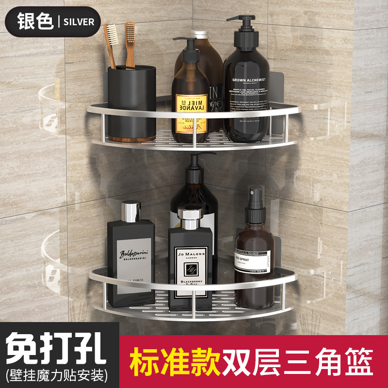 펀치 없는 욕실 수납 랙 화장실 수납 랙 화장실 코너 랙 걸이 공간 알루미늄 화장실 벽걸이