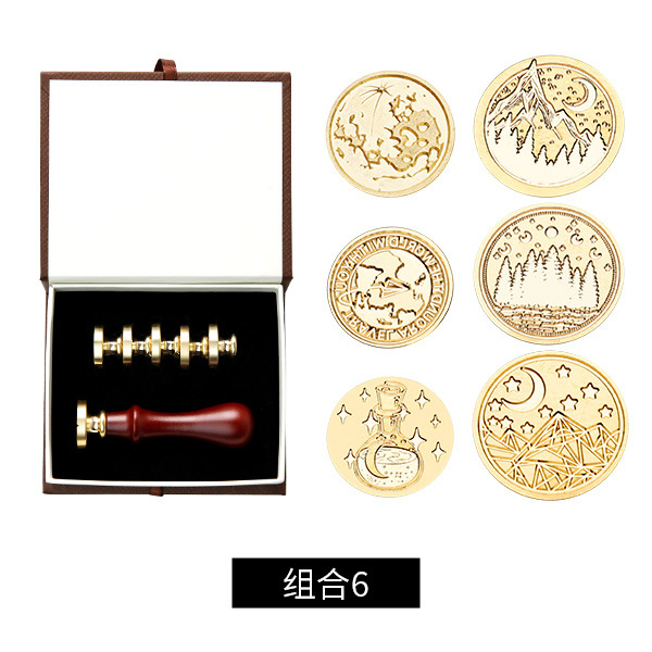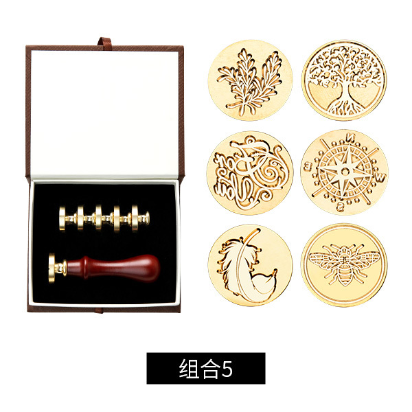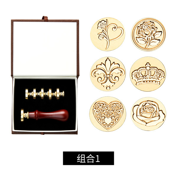 공장 도매 옻칠 인감 세트 장 머리 선물 상자 초대장 봉투 왁스 1 인감 + 5 구리 머리스토어 가기