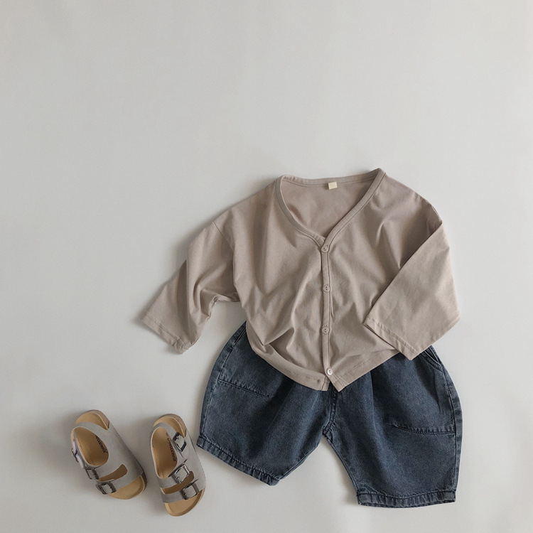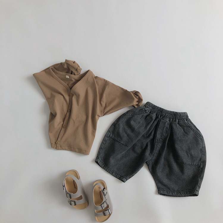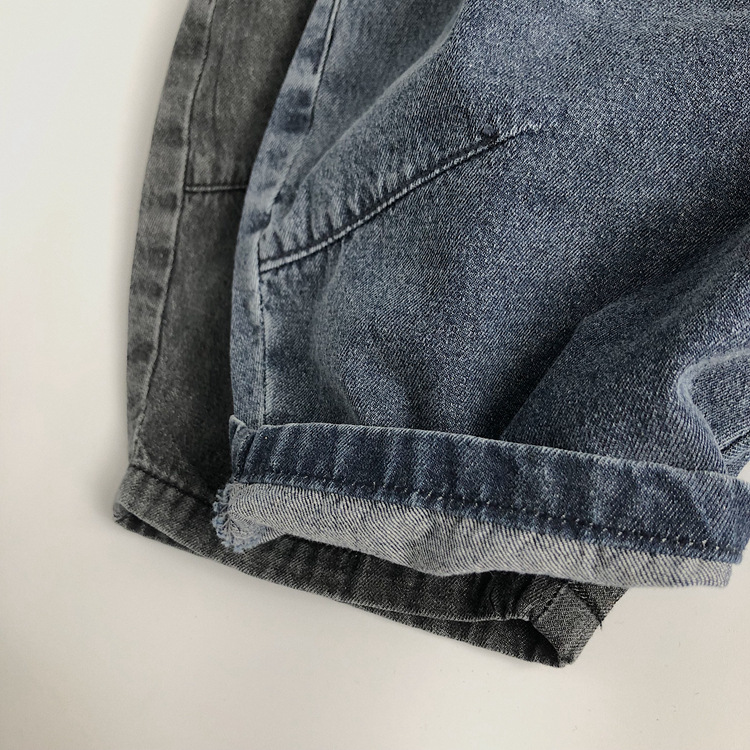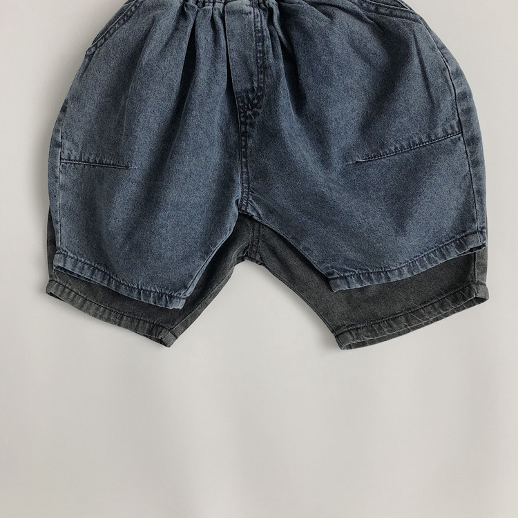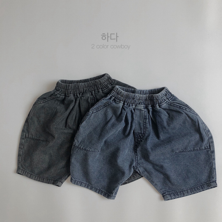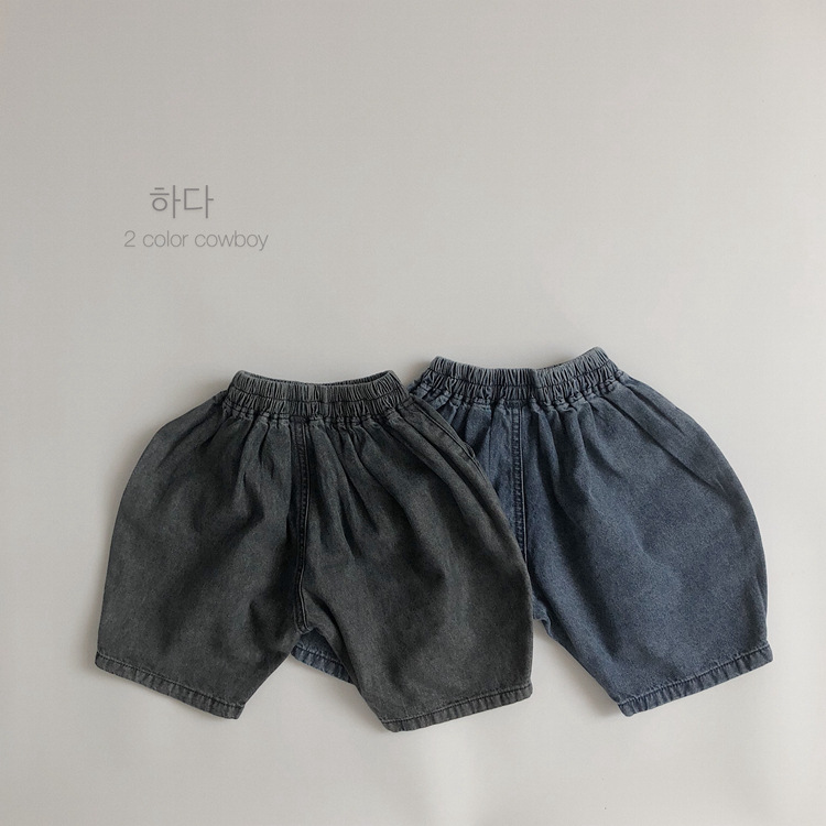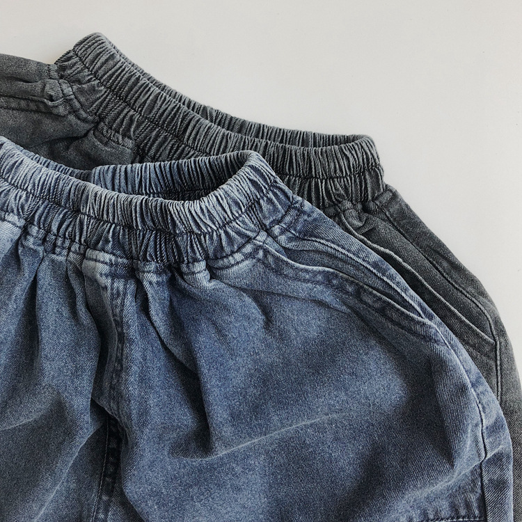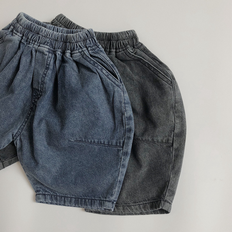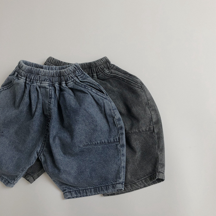 한국 아동복 여름 한국식 일본식 워싱 소프트 데님 반바지 느슨한 서양식 6 섹션 바지 소년과 소녀스토어 가기
