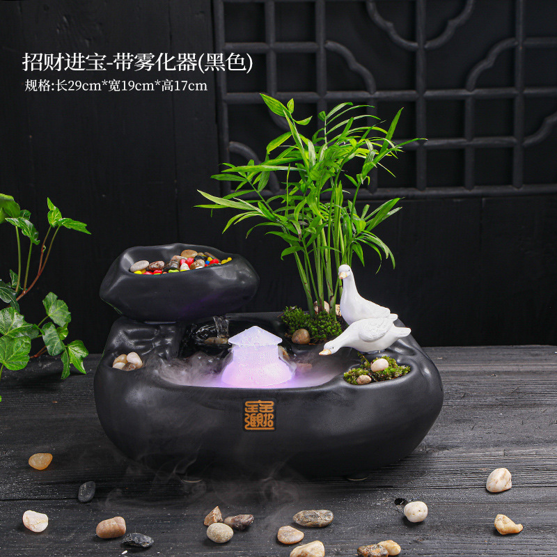 젠 세라믹 분수 장식 거실 데스크탑 가습 풍경 사무실 어항 럭키 풍수 장식