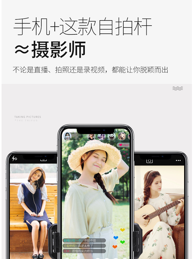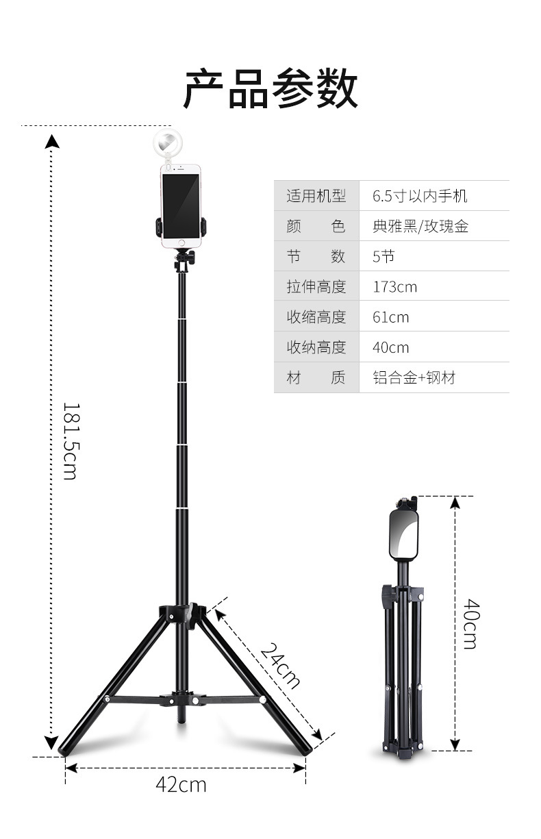 휴대 전화 라이브 방송 브래킷 삼각대 블루투스 트레몰로 카메라 사진 앵커 필 라이트 플로어 범용 셀카 스틱스토어 가기
