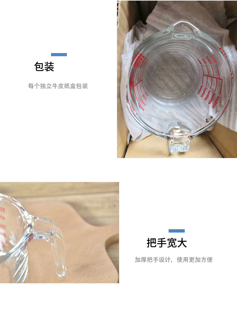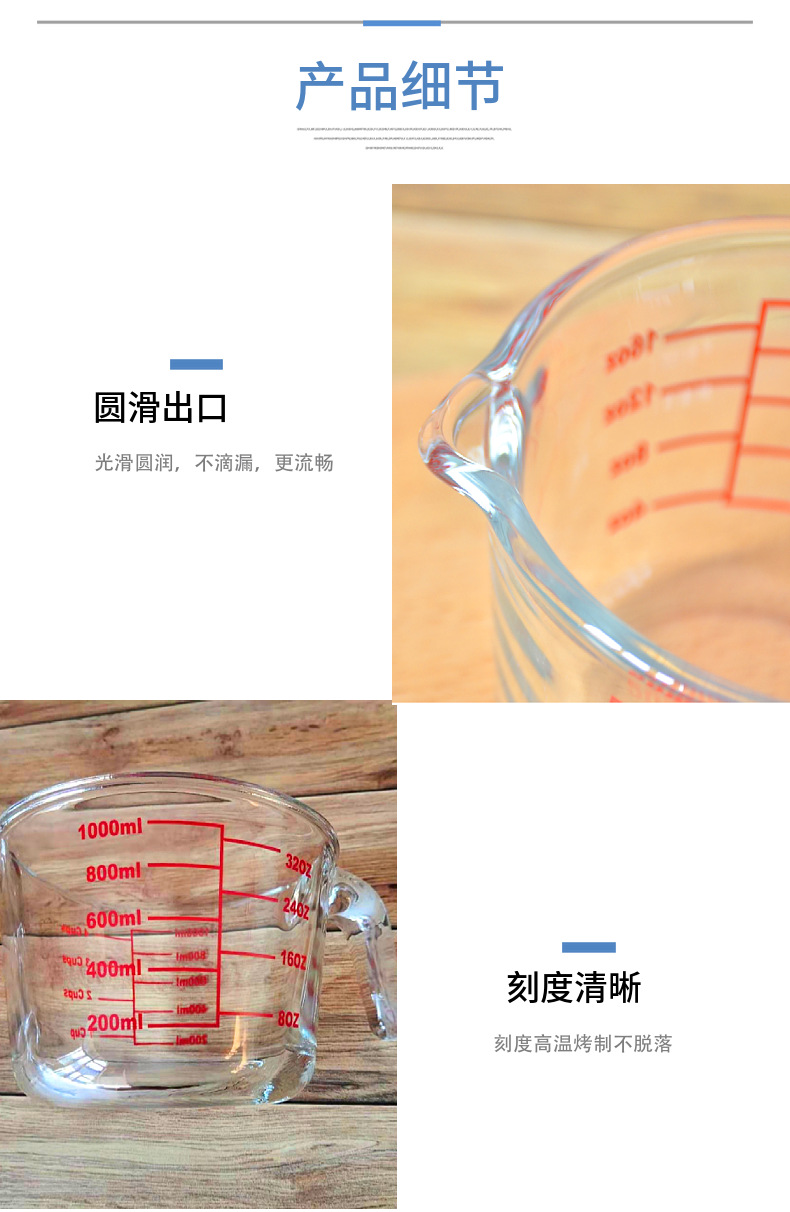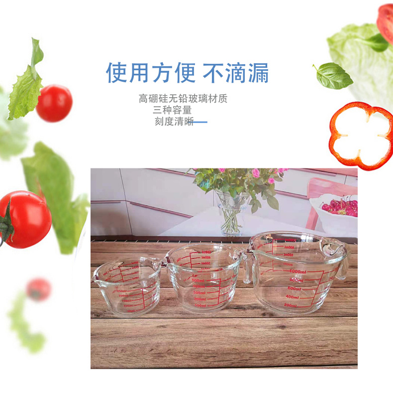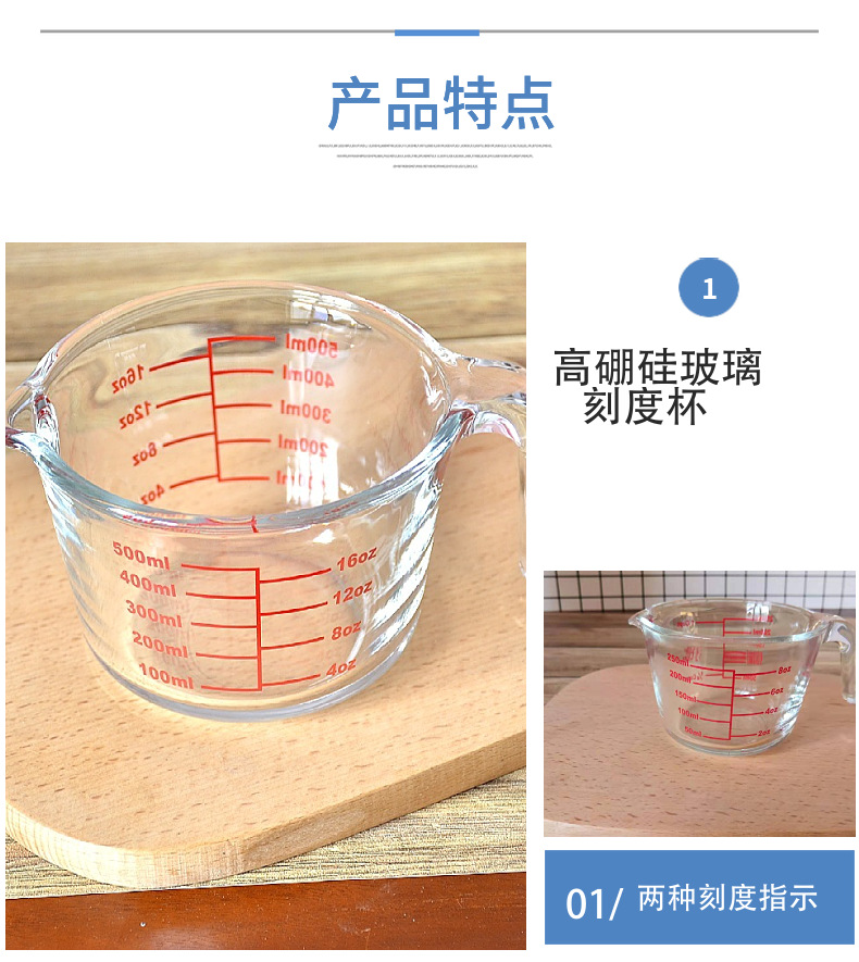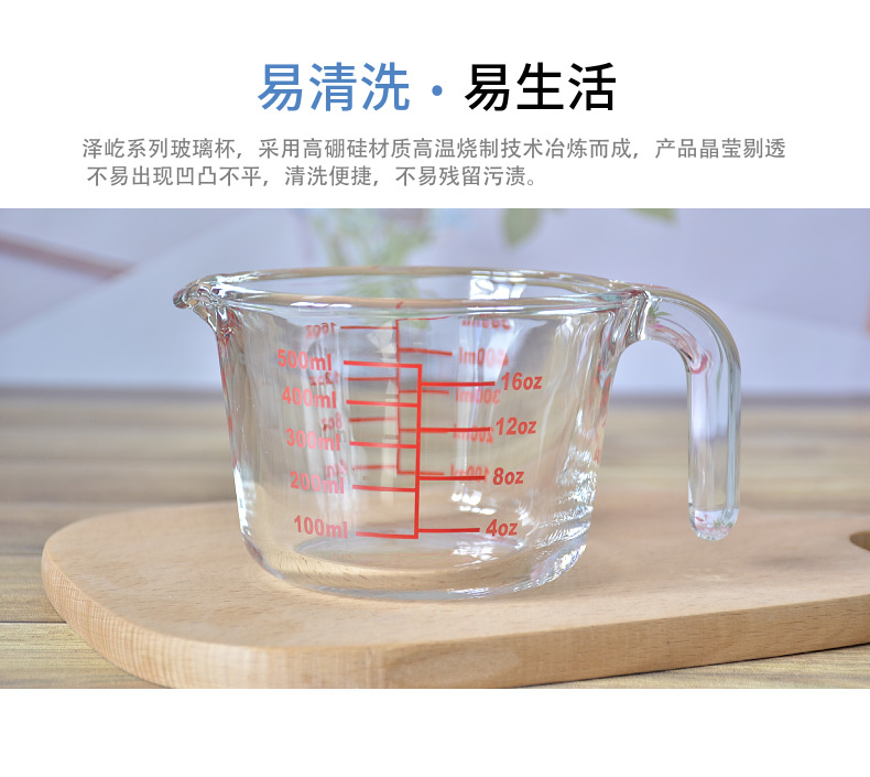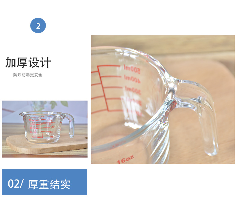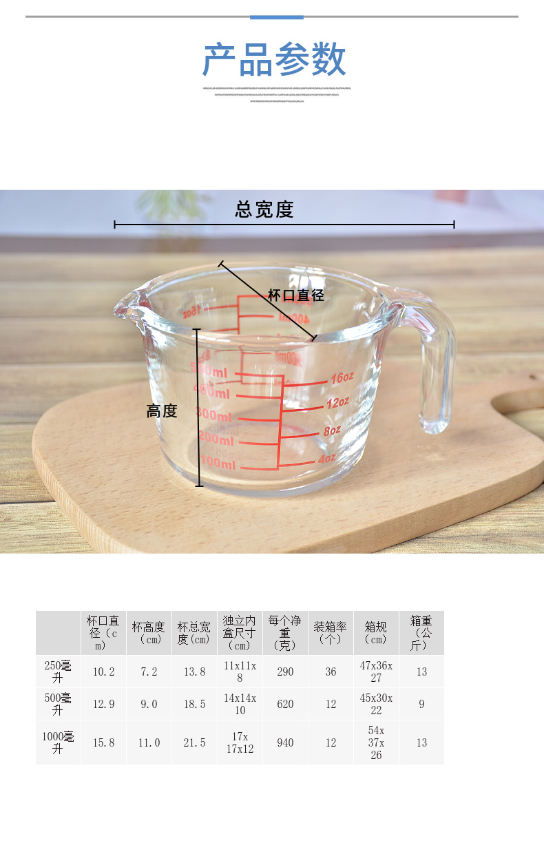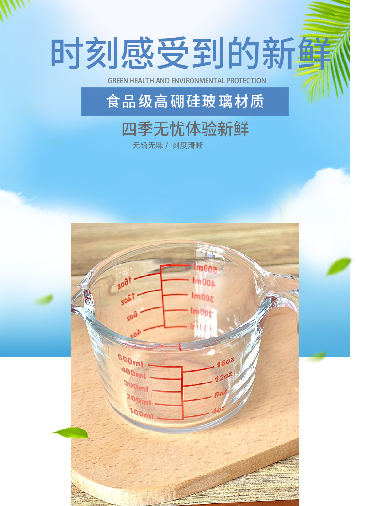 주방 용품 베이킹 유리 계량 컵 스케일 아침 식사 컵 손잡이 두꺼운 고붕규산 유리 고온 내성
