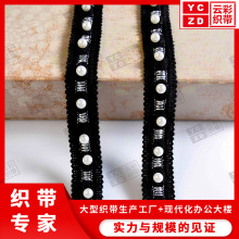 20213cm黑色带珍珠腈纶手工钩针编织服装辅料小香风花边织带