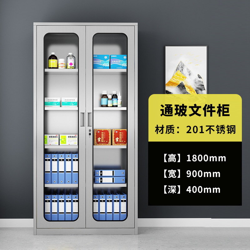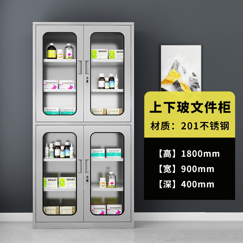 • 스테인레스 스틸 상단 및 하단 유리 파일 캐비닛