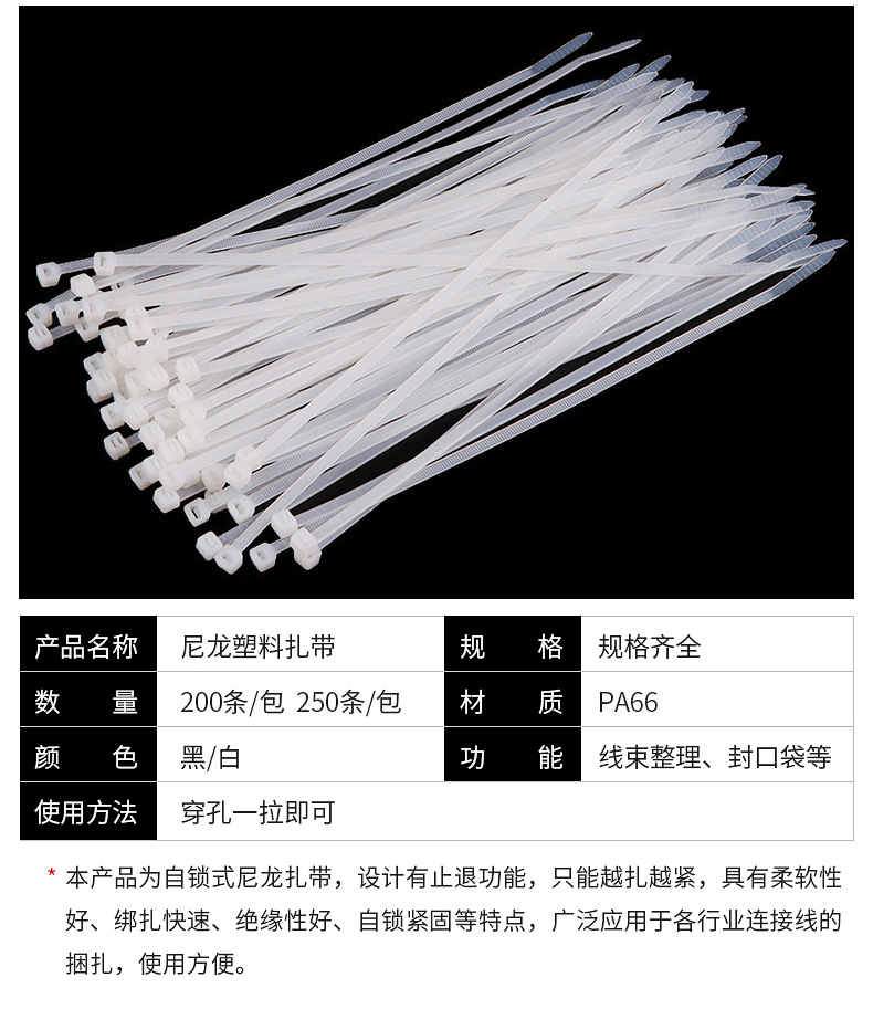 공장 직접 판매 자체 잠금 나일론 케이블 타이 플라스틱 스트래핑 도매 8*250 장력 스트랩 벨트 케이블 스트랩