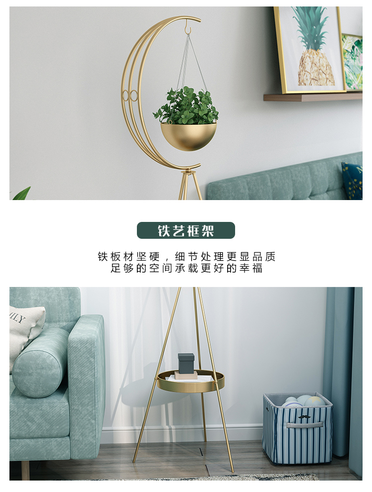 북유럽 철 삼각형 꽃 스탠드 현대 미니멀리스트 홈 거실 소파 측면 매달려 바구니 꽃 스탠드 발코니 바닥 꽃 스탠드스토어 가기
