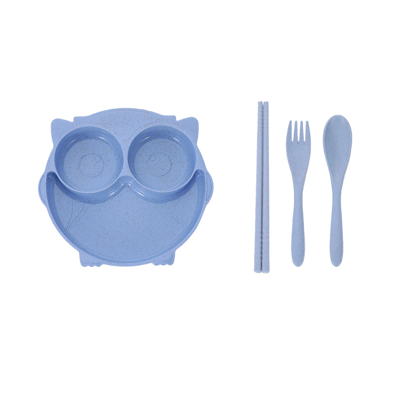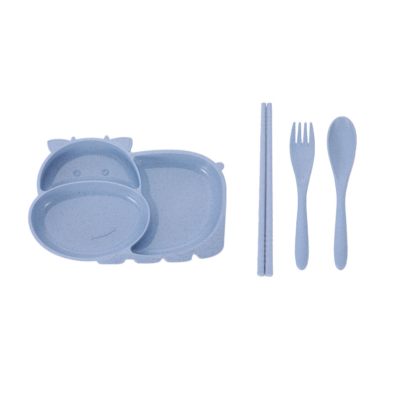 밀짚 귀여운 어린이 디너 플레이트 유치원 선물 식기 만화 그릇 세트 그릇 포크 스푼스토어 가기