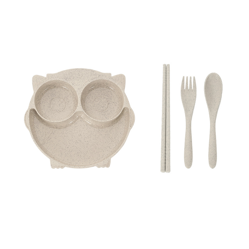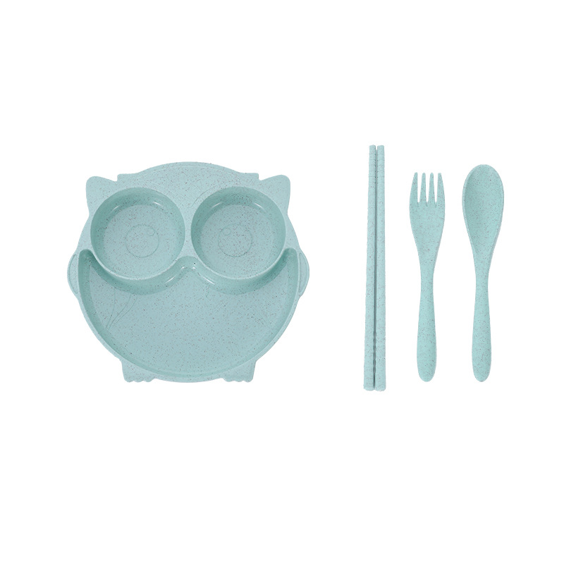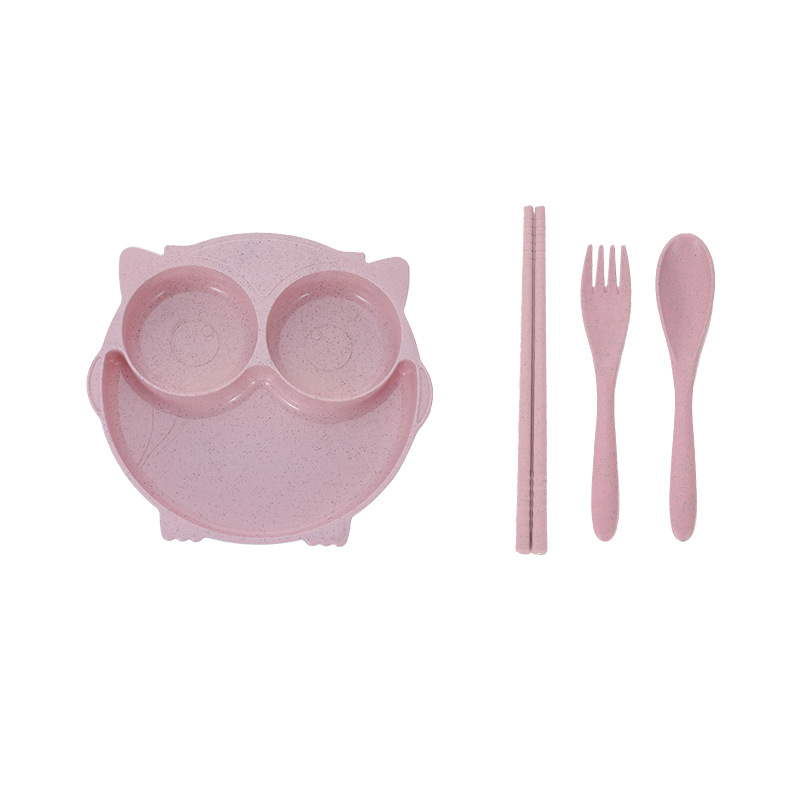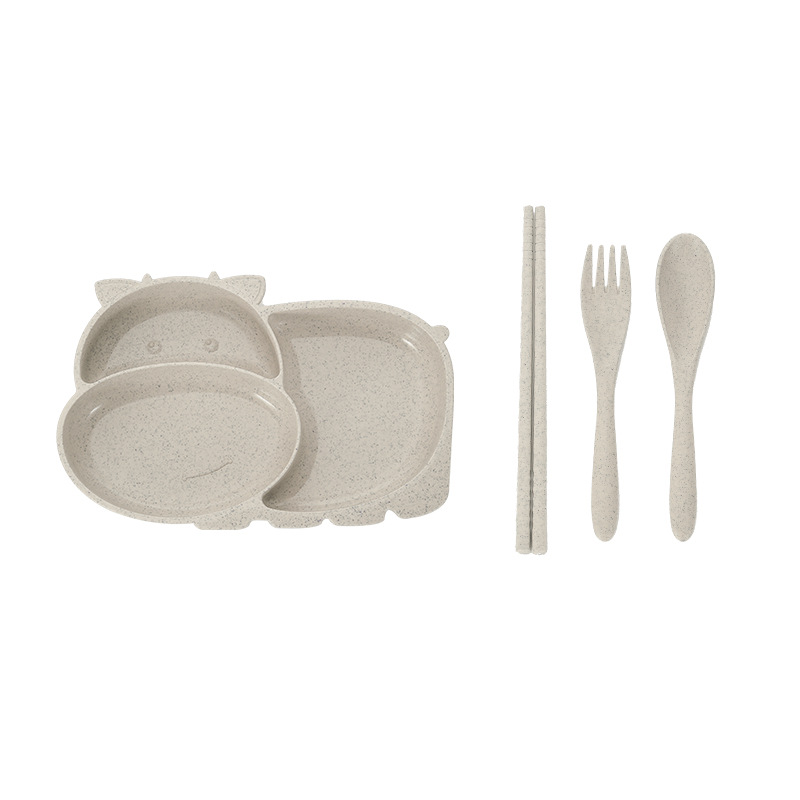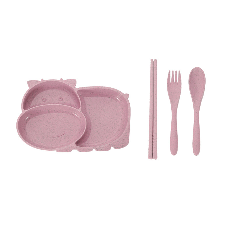 밀짚 귀여운 어린이 디너 플레이트 유치원 선물 식기 만화 그릇 세트 그릇 포크 스푼