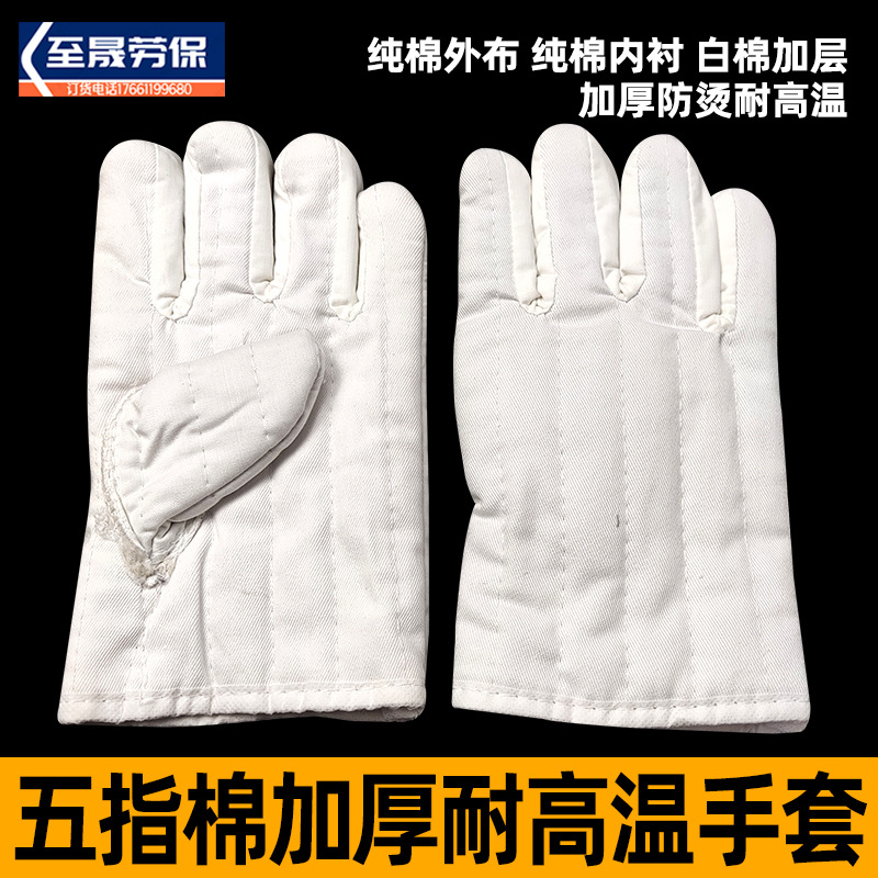 공장 도매 두꺼운 단열 고온 화상 방지 스틸 베이킹 코튼 다섯 손가락 코튼 캔버스 장갑스토어 가기
