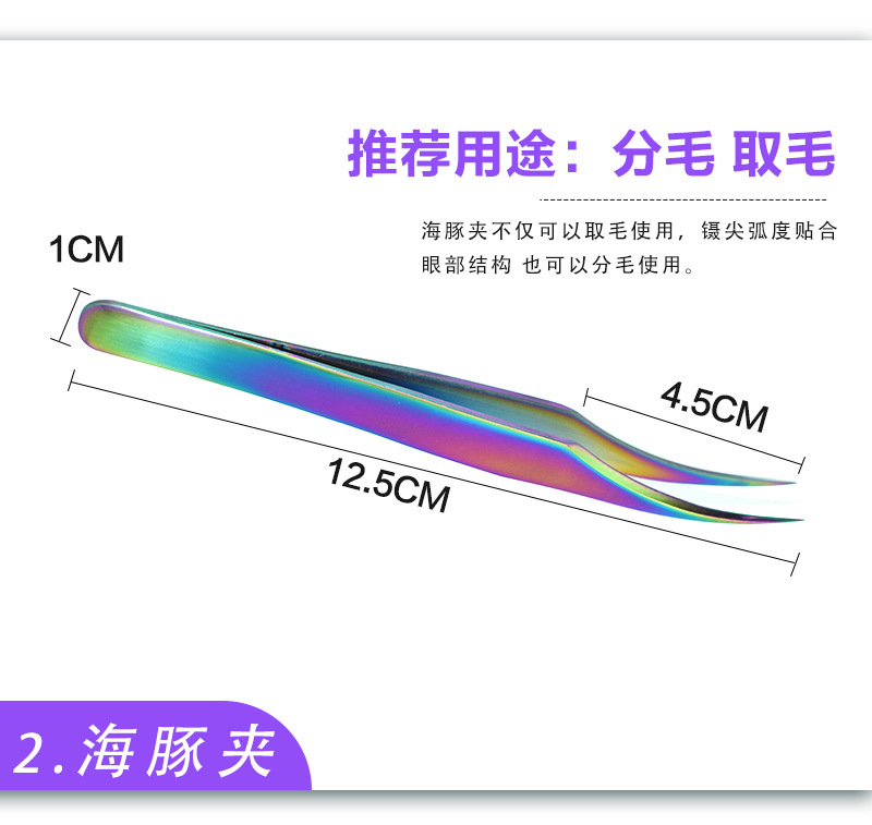 뜨거운 판매 다채로운 접목 속눈썹 핀셋 세트 고밀도 금 깃털 클립 돌고래 클립 스테인레스 스틸 핀셋 심기 곡선 입 클립스토어 가기