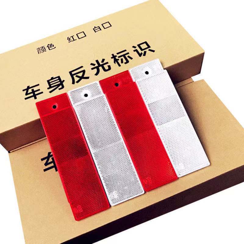 구멍과 구멍이있는 접착 재고 자동차의 연간 검사를위한 박스형 트럭용 빨간색과 흰색 플라스틱 반사 스티커스토어 가기