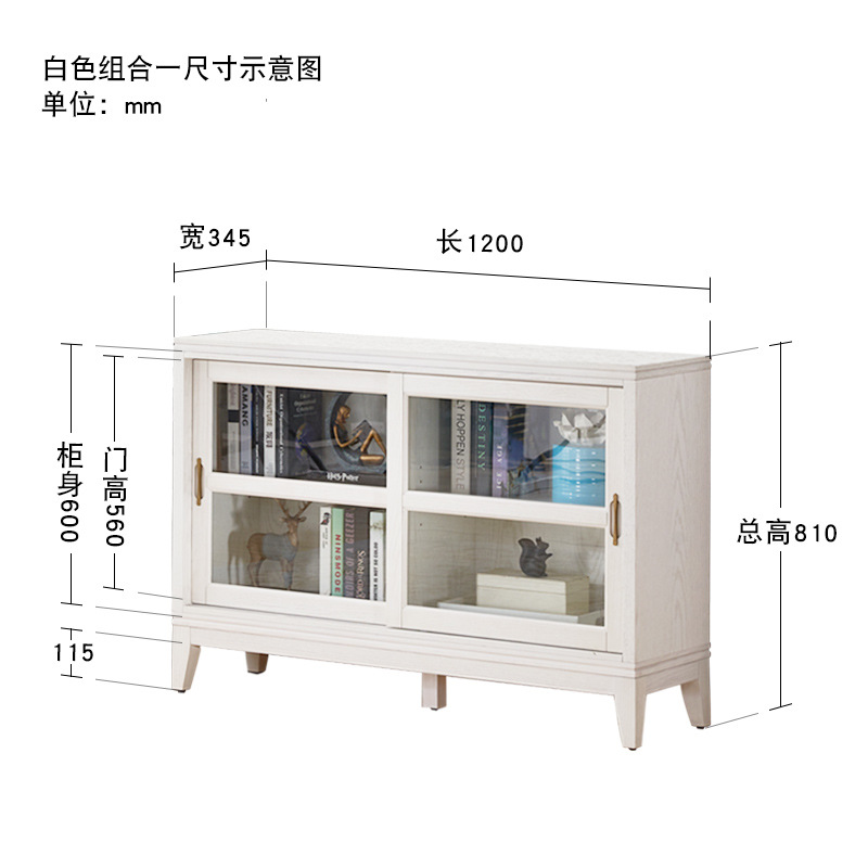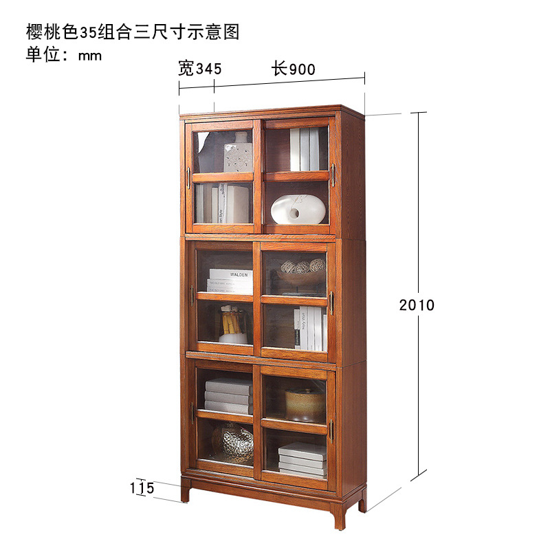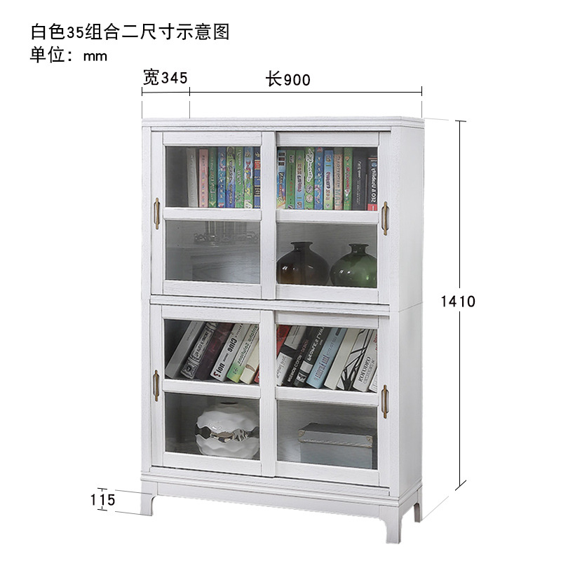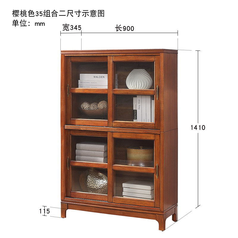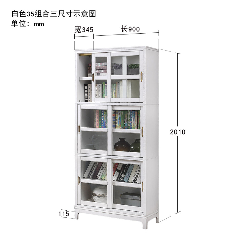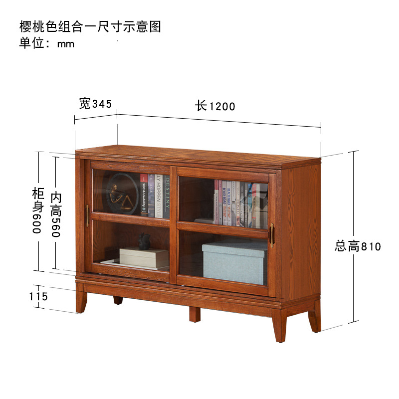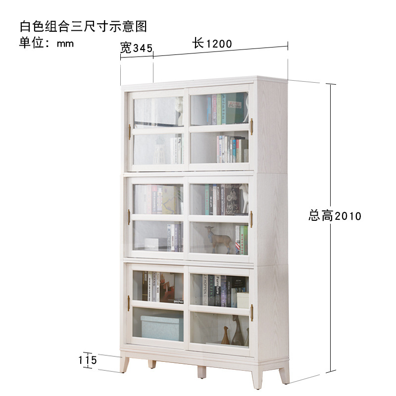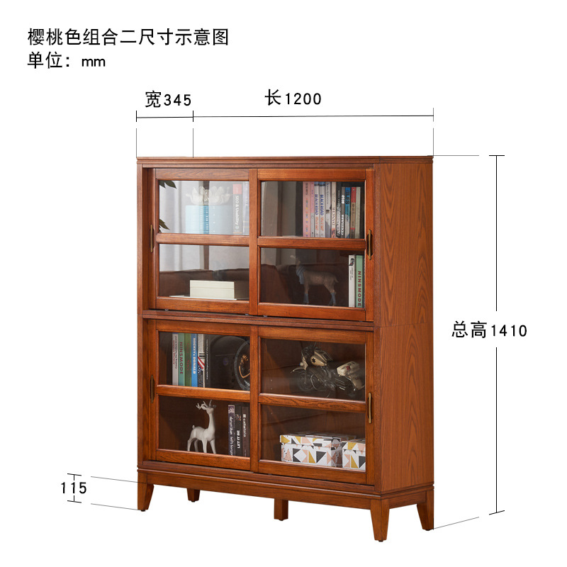 문과 유리문 수납 캐비닛이있는 미국식 단단한 나무 책장 통합 벽 거실 수납 캐비닛 바닥 스탠딩 푸시 풀 책장스토어 가기