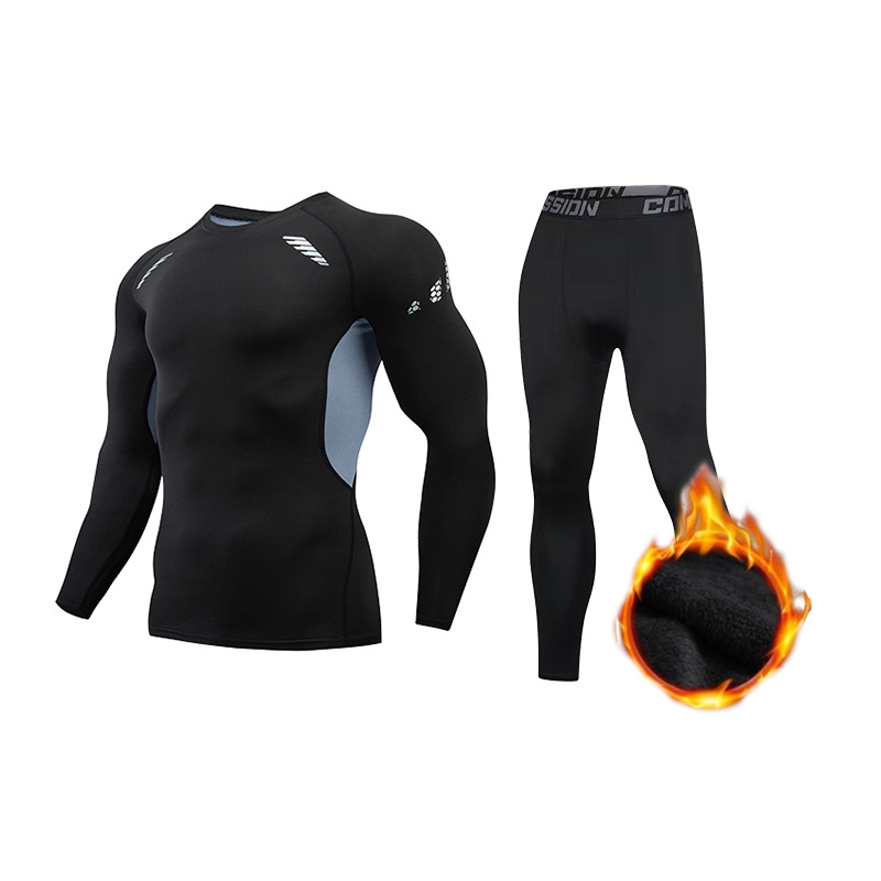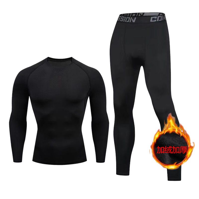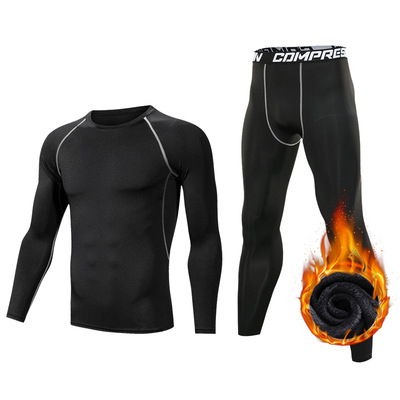 남자의 긴 소매 바지 피트니스 세트 기모 두꺼운 런닝웨어 스포츠 꽉 양털 열 속옷스토어 가기