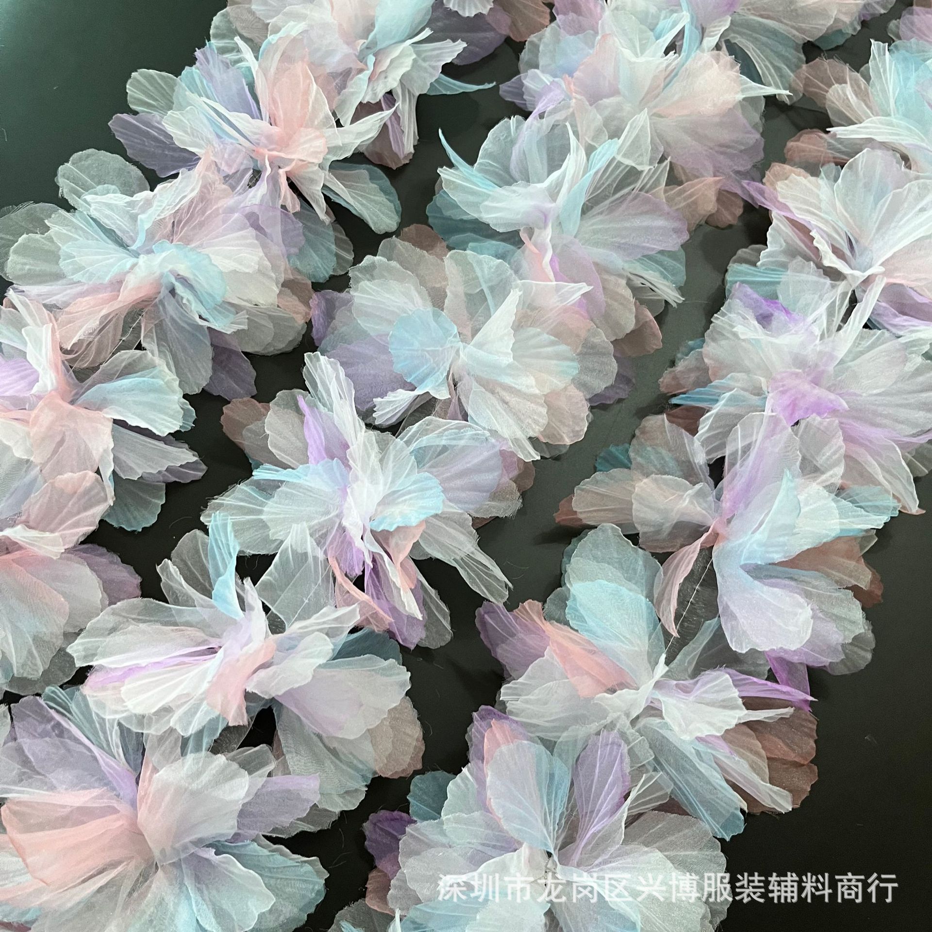 14cm 입체 오간자 레이스 DIY 그라디언트 수제 꽃 의류 액세서리 장식 꽃 발레 인형 댄스 스커트스토어 가기