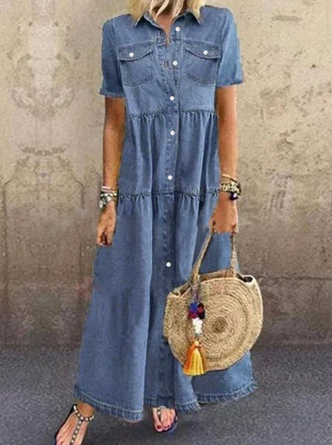 2021 아마존 소원 크로스 국경 독립 역 새로운 여성의 단색 싱글 브레스트 데님 원피스