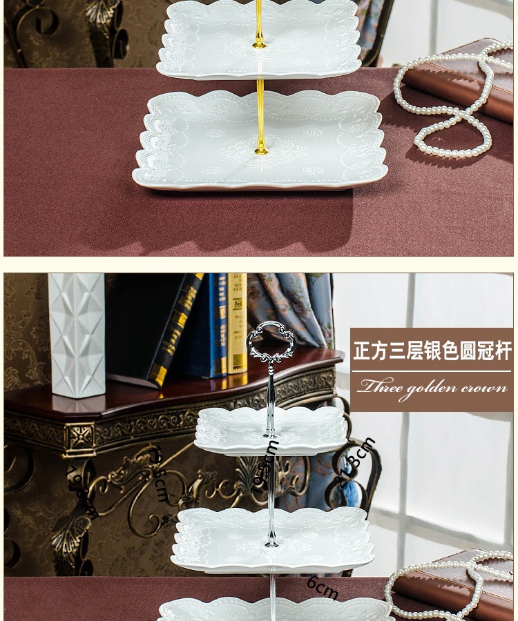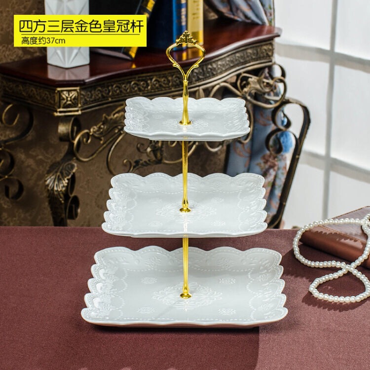 欧式陶瓷三层水果盘子篮客厅创意蛋糕架玻璃干果盘下午茶点心托盘欧式陶瓷三层水果盘子篮客厅创意蛋糕架玻璃干果盘下午茶点心托盘