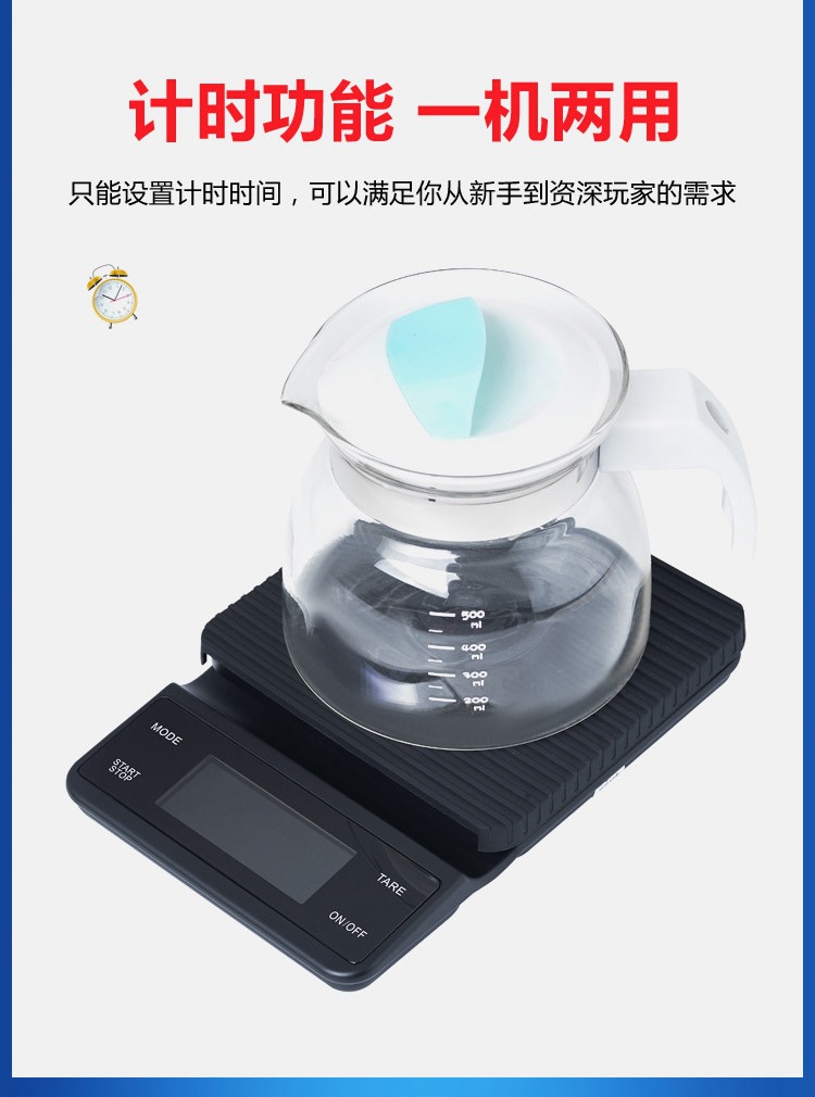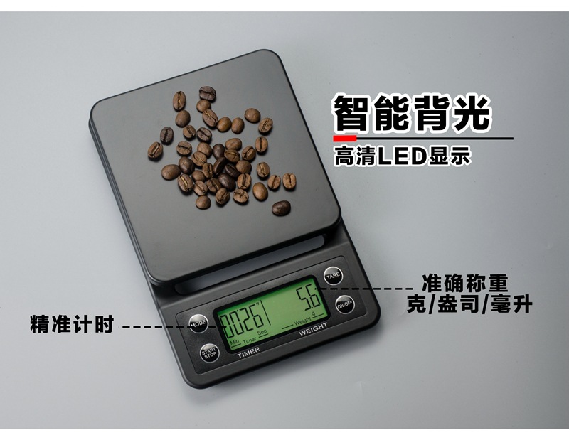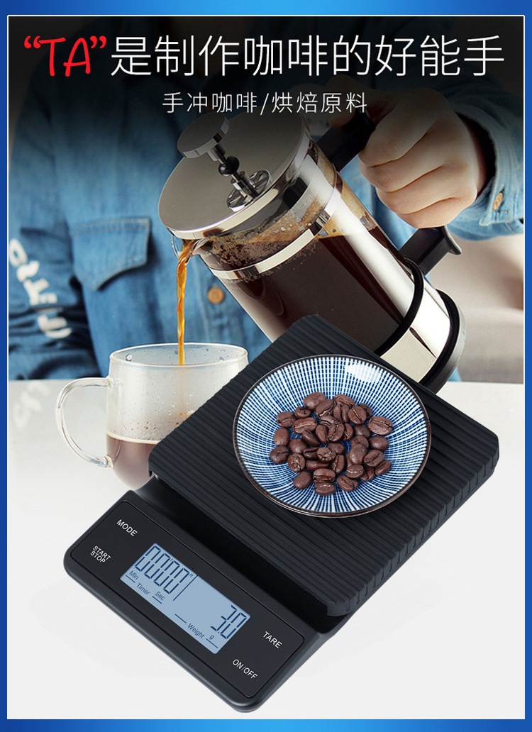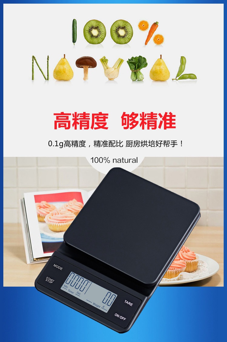 厨房烘焙计时电子秤迷你家用手冲咖啡称5kg量程0.1克高精度电子称