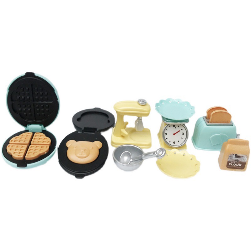 整套开模,属于半成品,需收到货自己简单组装,配套齐全,放在娃娃屋的厨房餐厅百搭。有打磨机,烤面包机,2个花边盘子,还有个小称的哦,颜色鲜艳。虽然是塑料,但是质感很好的呢。黄色蓝色配件的颜色有时候会互换,颜色随机。
