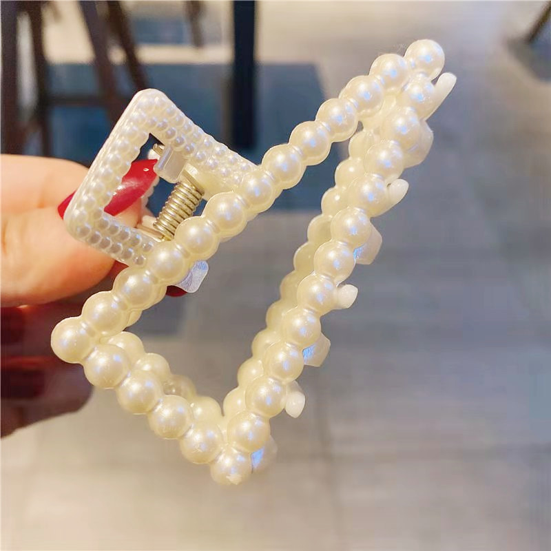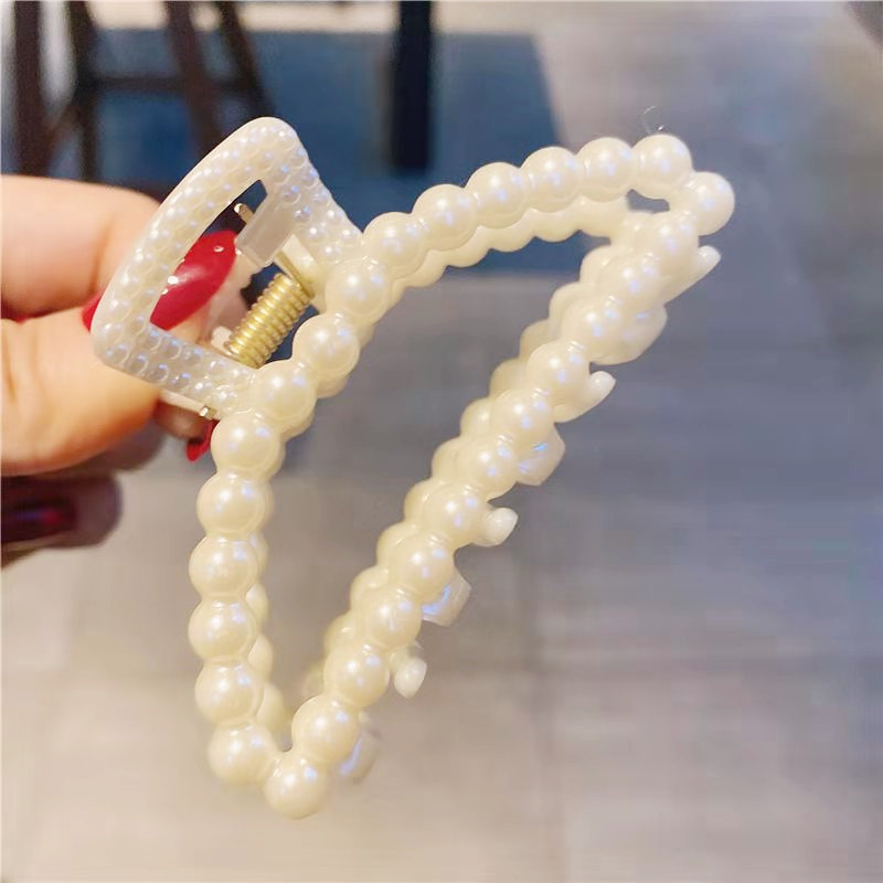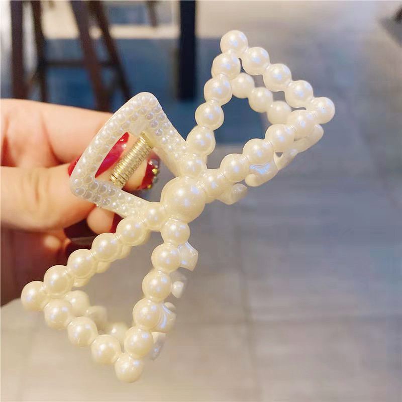 진주 그립 대형 머리핀 그물 빨간 머리 머리 긁는 판 말꼬리 고정 머리 발톱 작은 그립