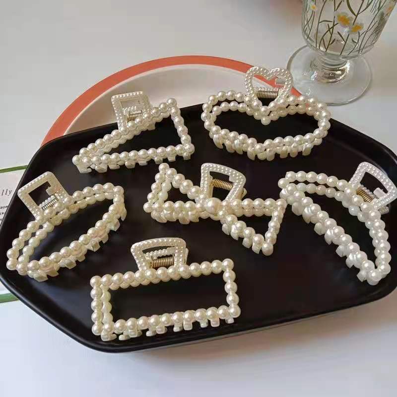 진주 그립 대형 머리핀 그물 빨간 머리 머리 긁는 판 말꼬리 고정 머리 발톱 작은 그립스토어 가기