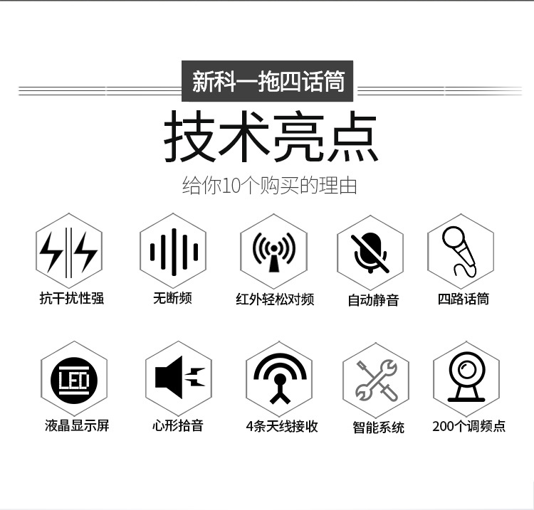 • 4 인용 10 인치 KTV 컨퍼런스 오디오 세트 1 개
