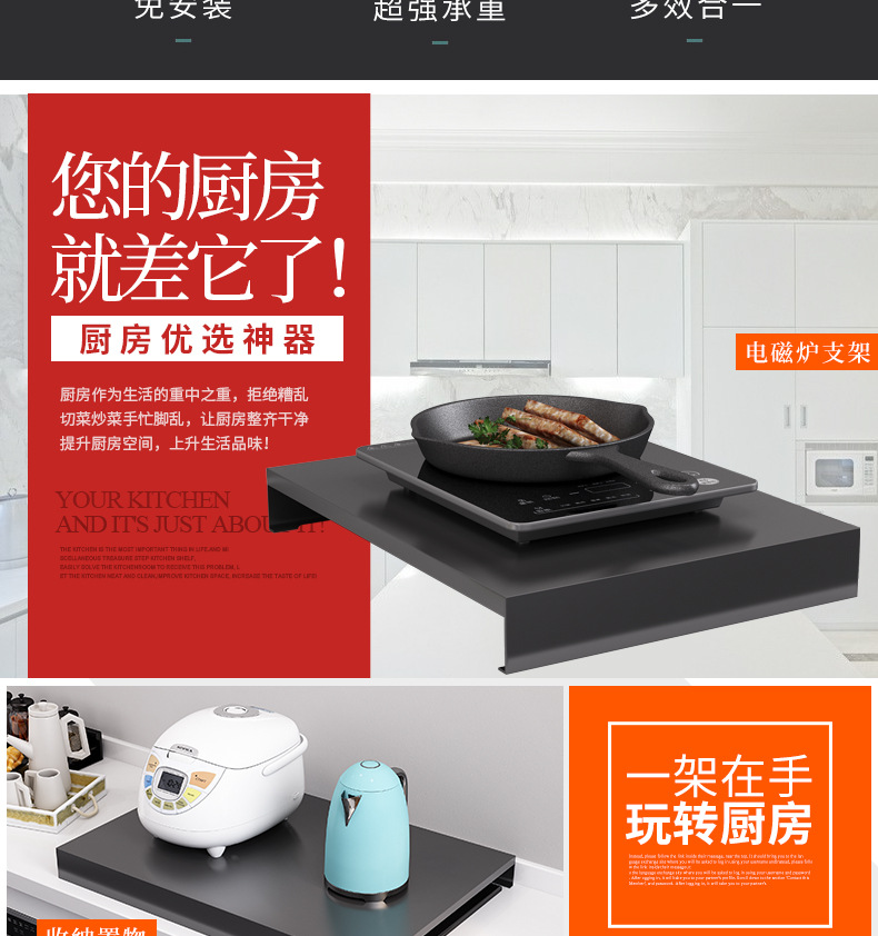 검은 주방 선반 스테인레스 스틸 유도 밥솥 선반 브래킷 카운터 탑 가스 스토브 커버 도매스토어 가기