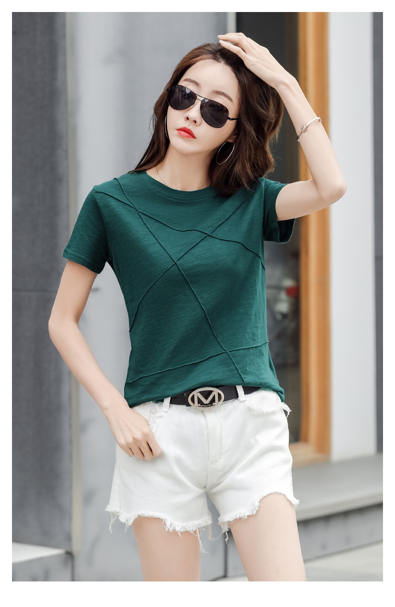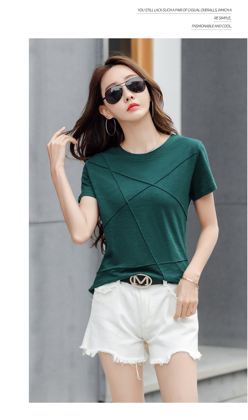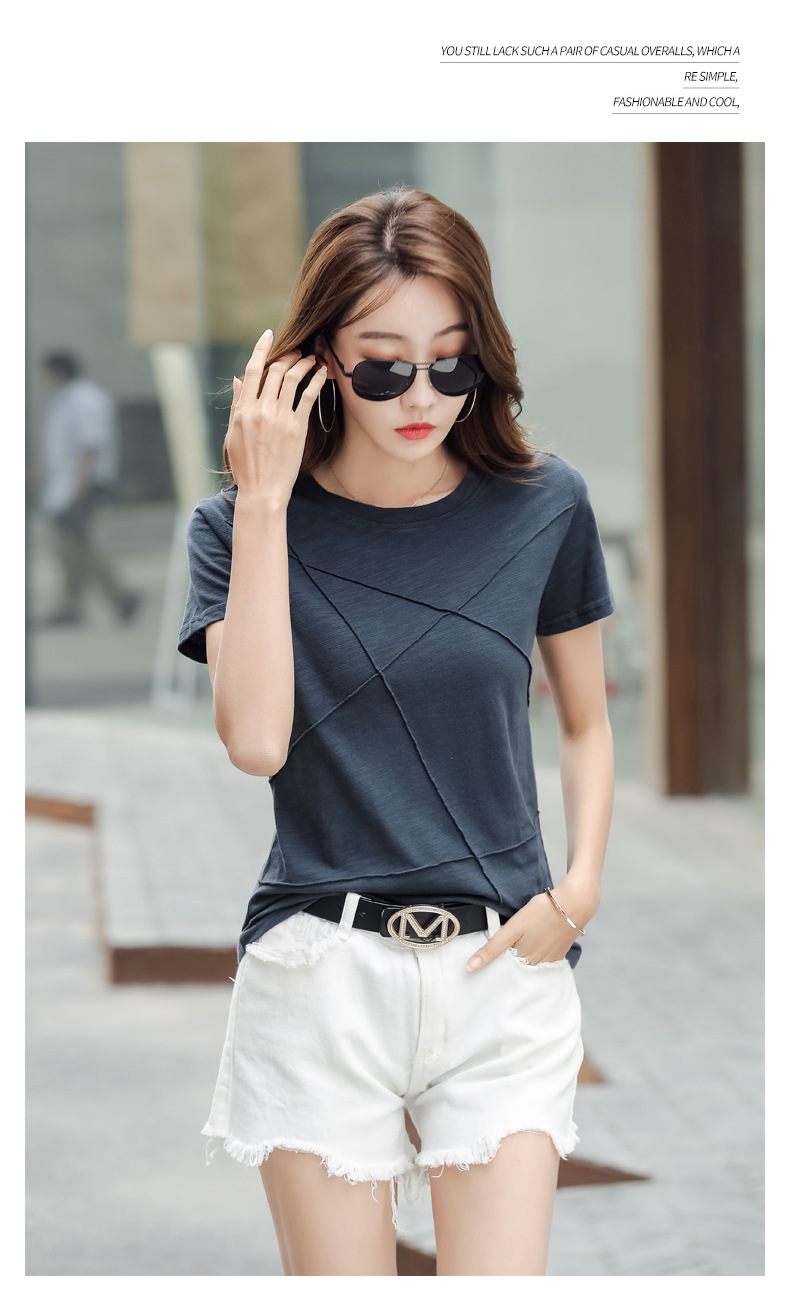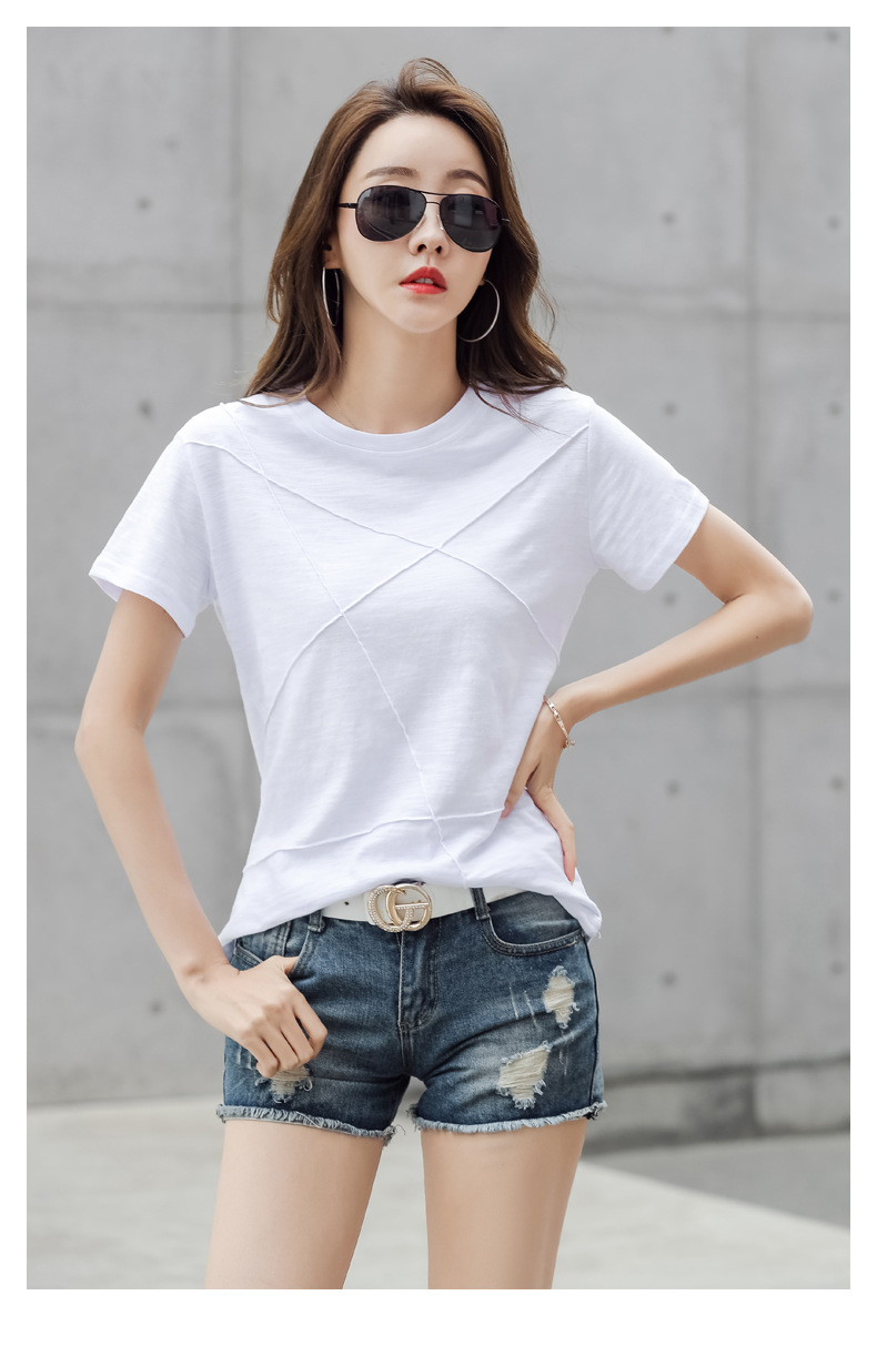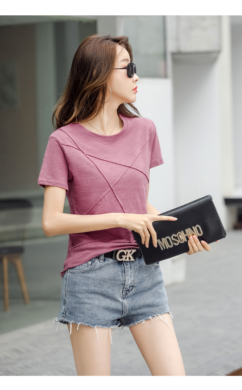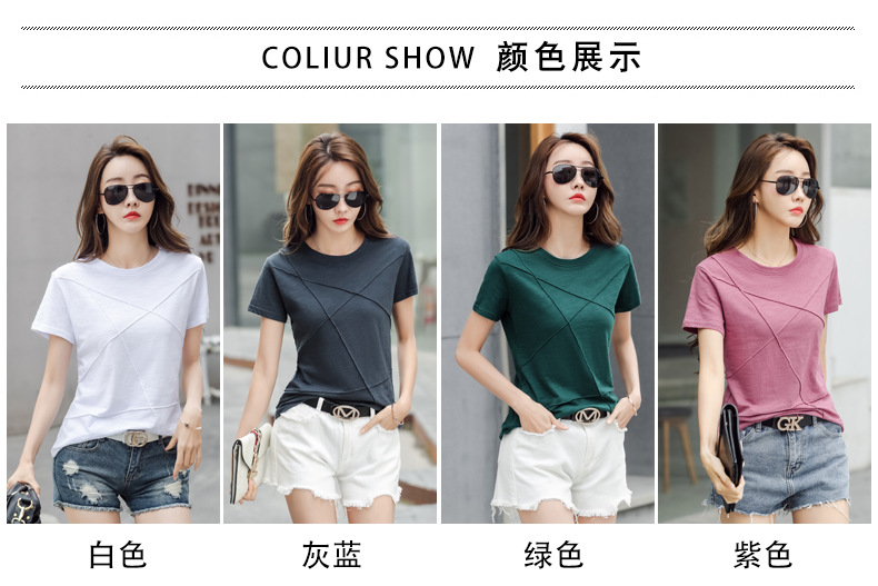 순수 코튼 대나무 코튼 반팔 티셔츠 여성 느슨한 대형 슬림 한국어 버전 2025 여름 새 스타일 티셔츠 캐주얼 바닥 셔츠스토어 가기