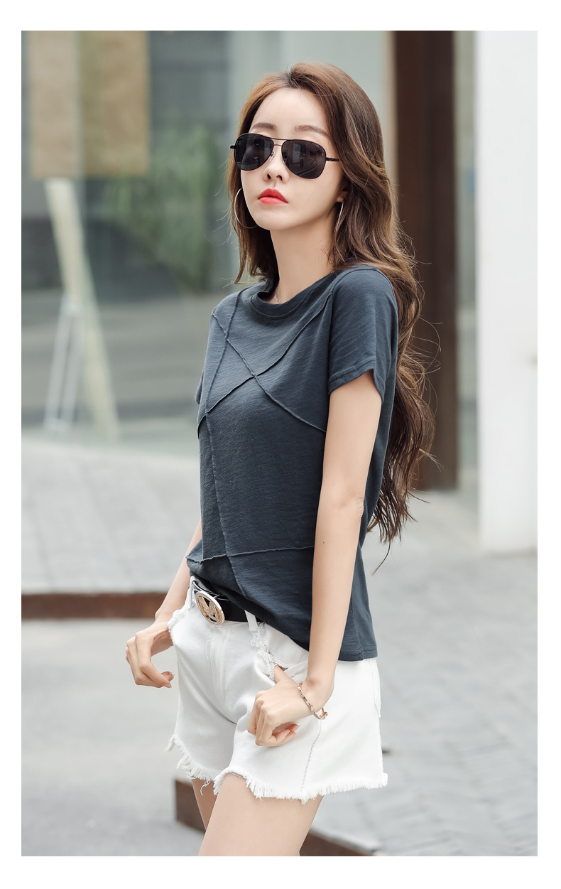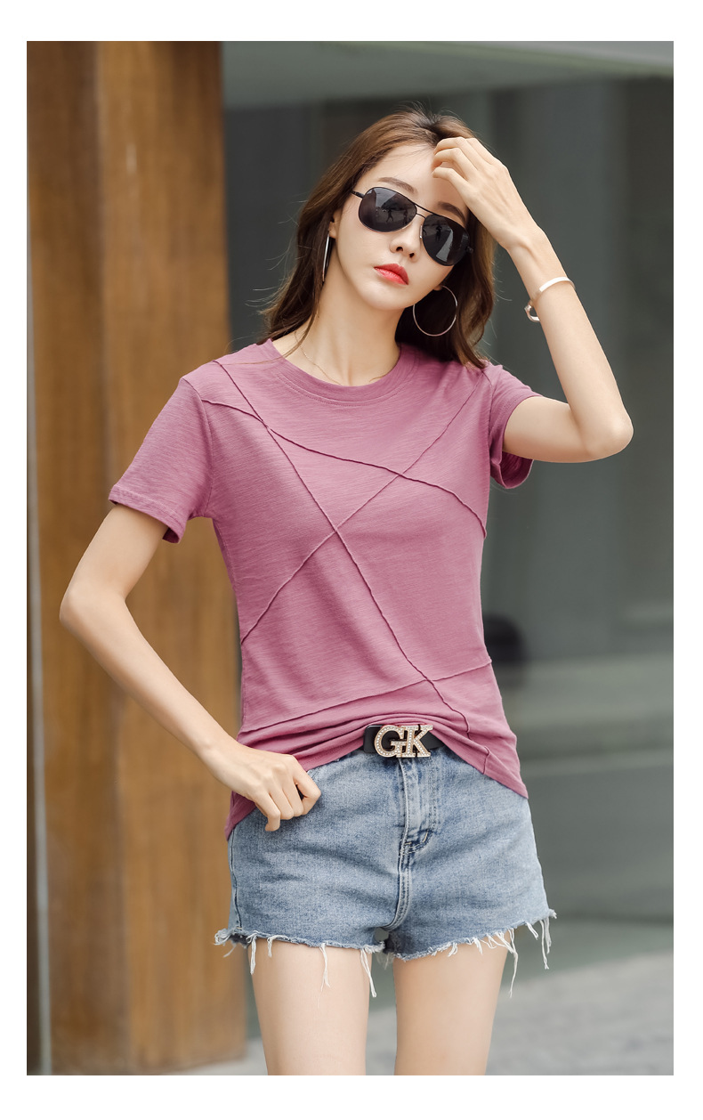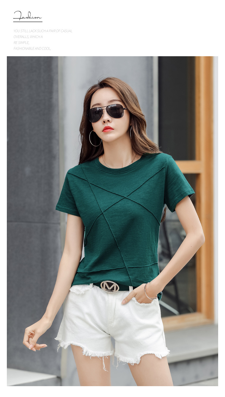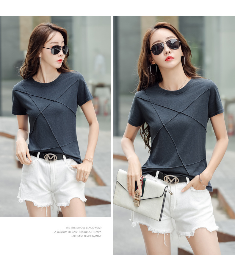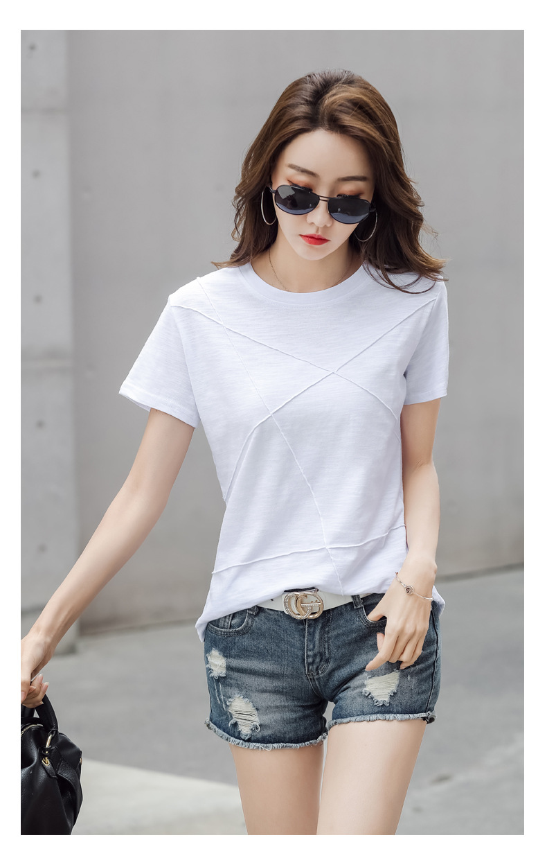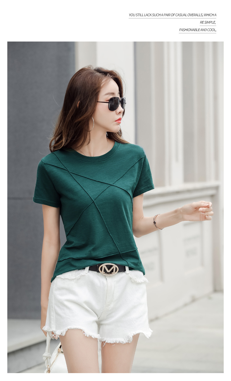 순수 코튼 대나무 코튼 반팔 티셔츠 여성 느슨한 대형 슬림 한국어 버전 2025 여름 새 스타일 티셔츠 캐주얼 바닥 셔츠스토어 가기