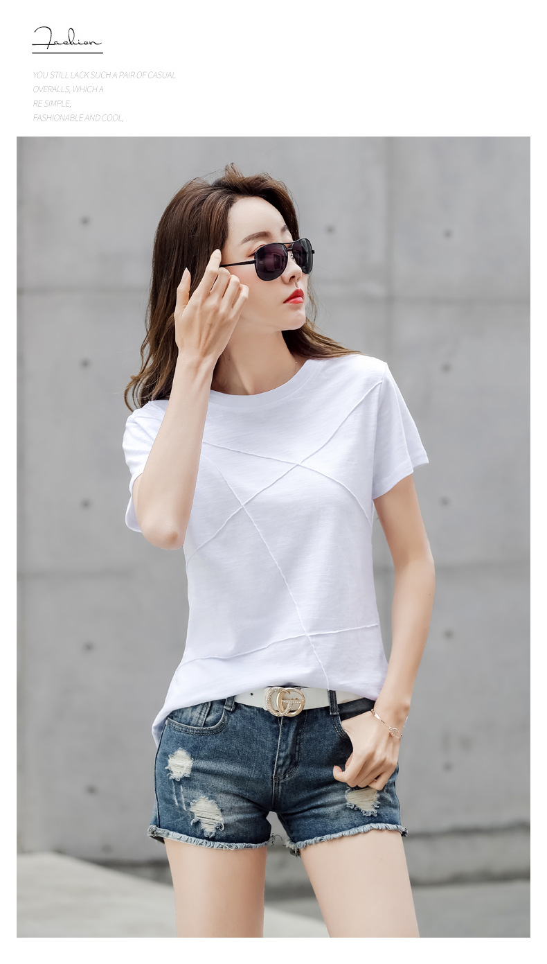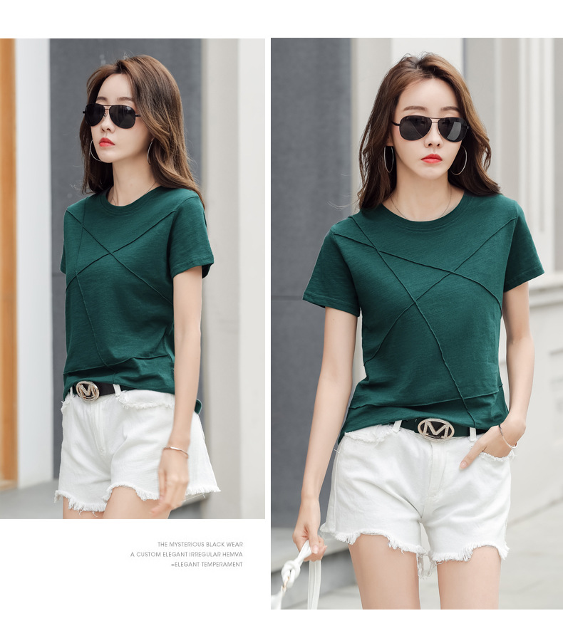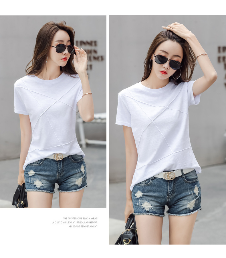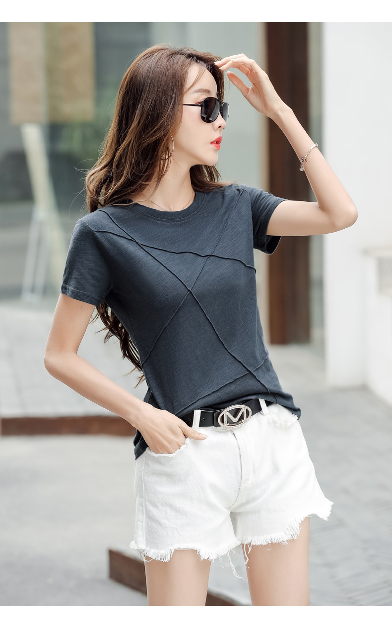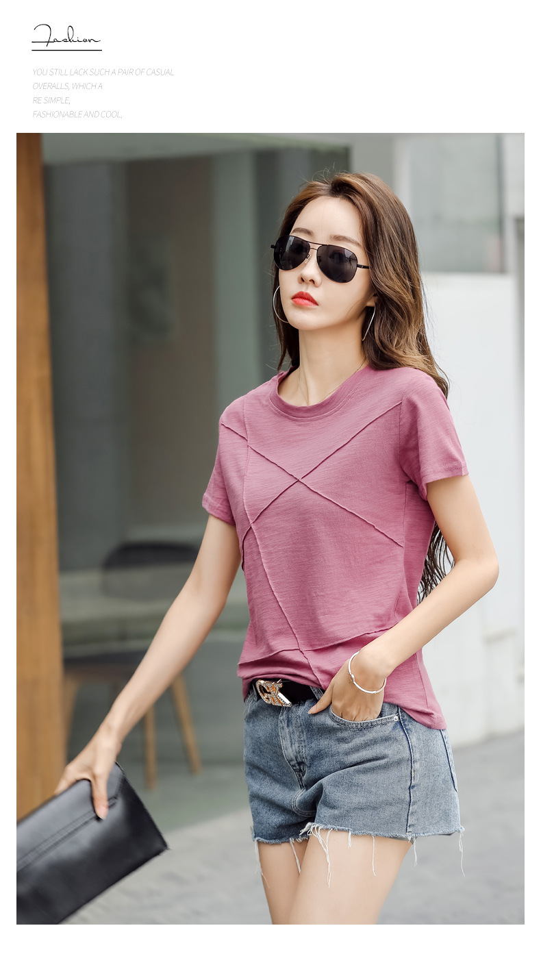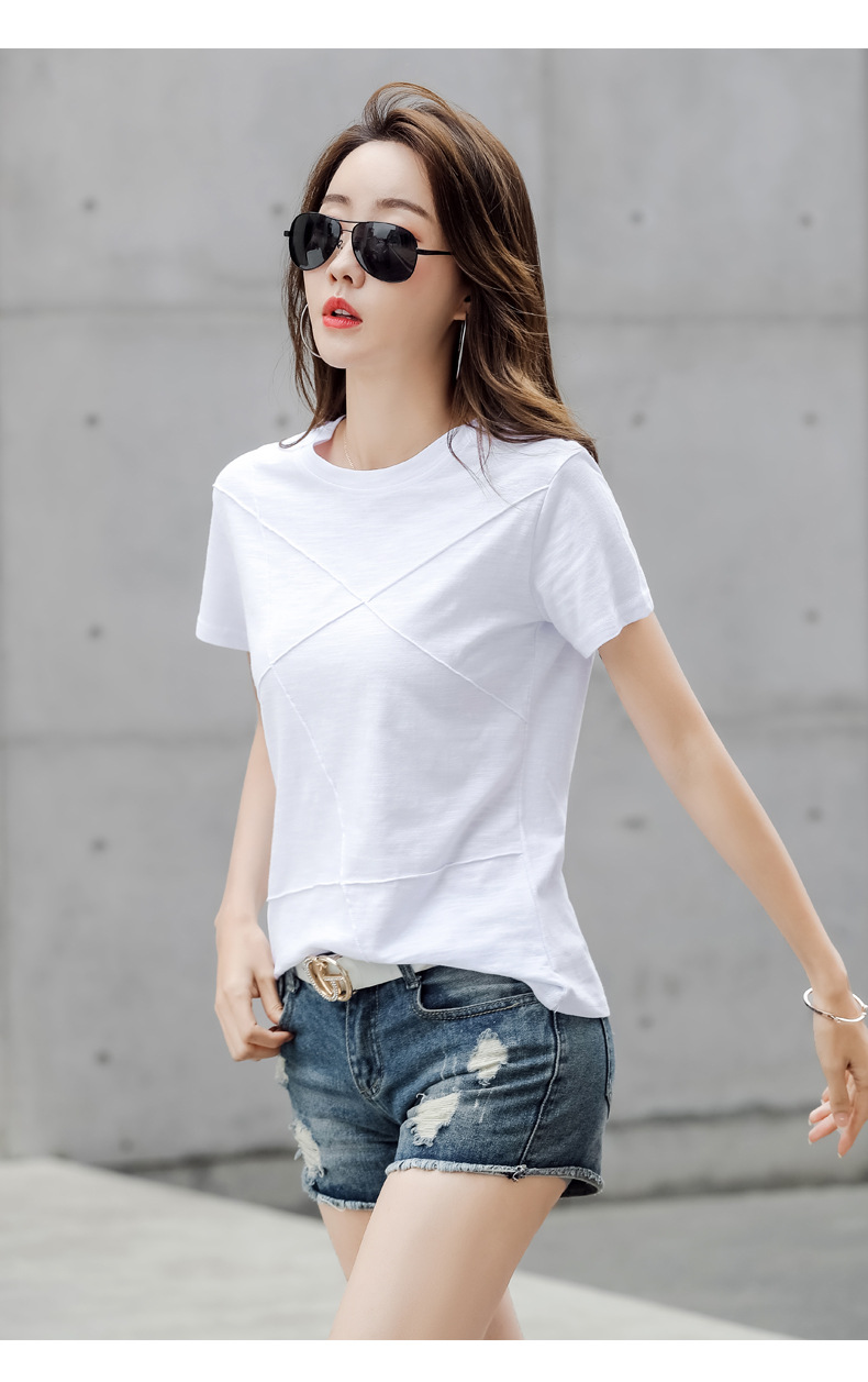 순수 코튼 대나무 코튼 반팔 티셔츠 여성 느슨한 대형 슬림 한국어 버전 2025 여름 새 스타일 티셔츠 캐주얼 바닥 셔츠스토어 가기