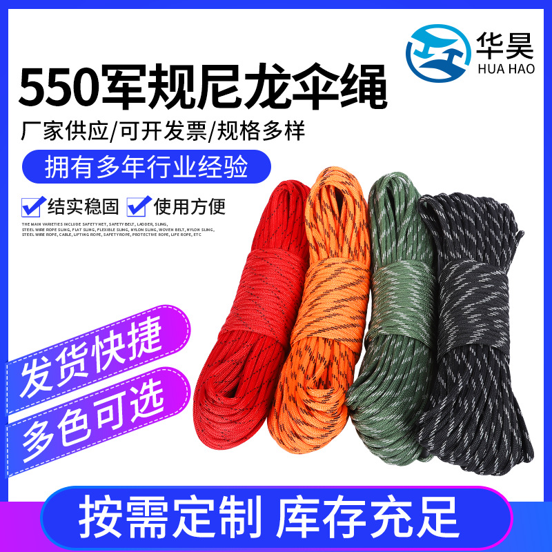 공장 공급 도매 550 나일론 우산 로프 야외 생존 7 심 우산 로프 야외 캠핑 낙하산 로프