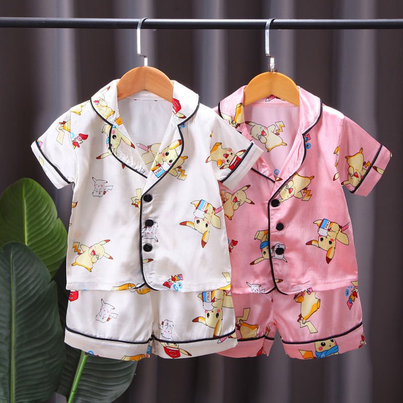 어린이 잠옷 아기 소녀의 여름 옷 1-2-3-4-5 세 소년의 짧은 소매 세트 아이스 실크 가정 옷 에어컨 옷스토어 가기